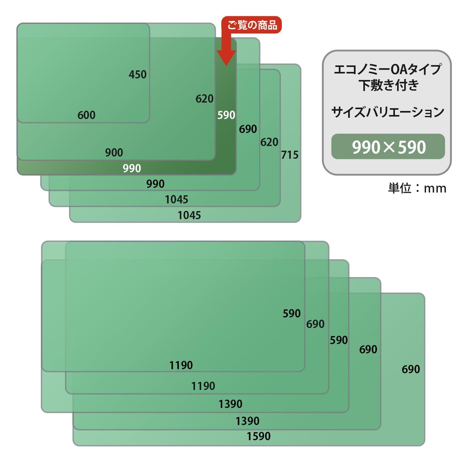 環境に配慮し再生材を使用したデスクマット。エコノミータイプ。マウス対応。OAコードの配線スペースのために奥行が590mm。