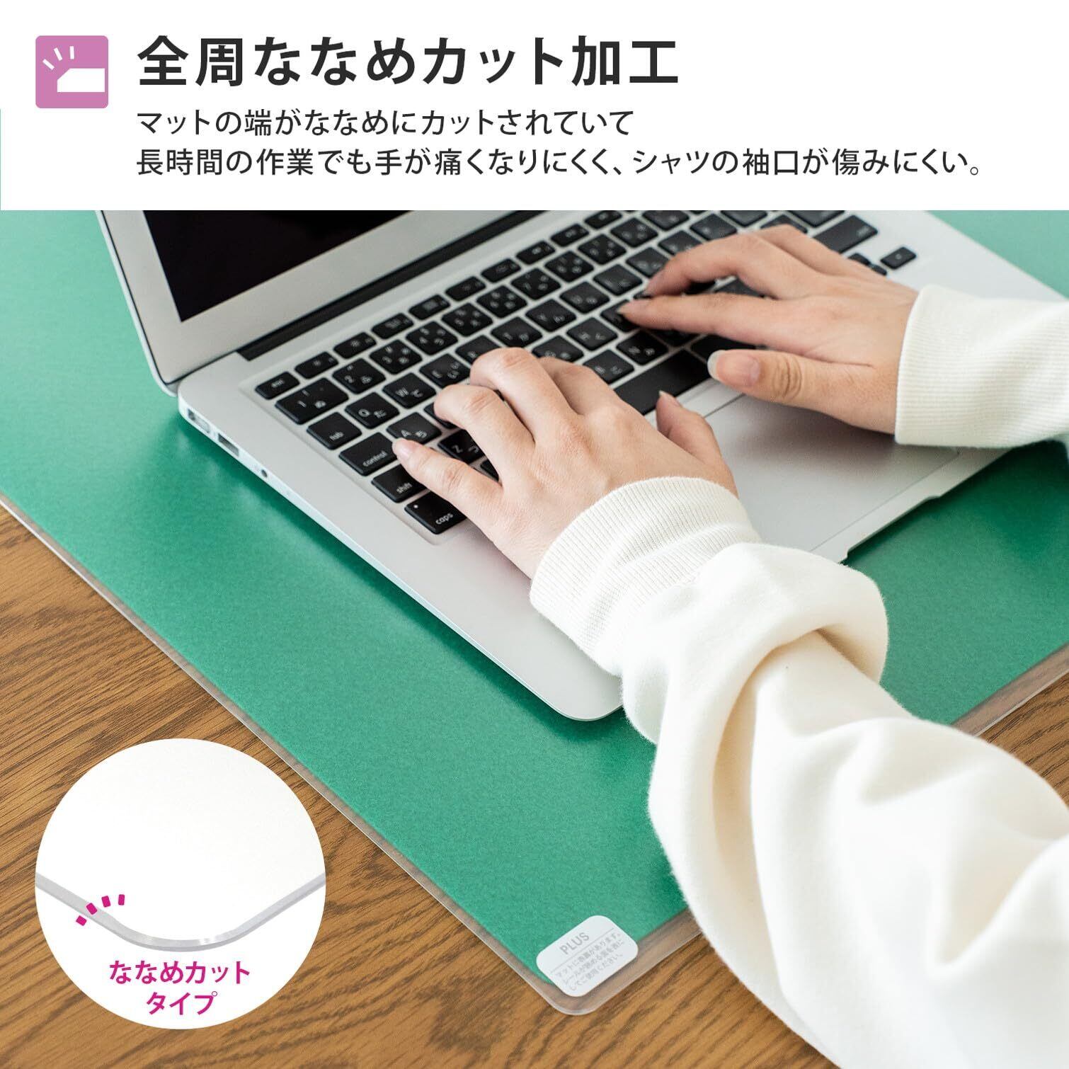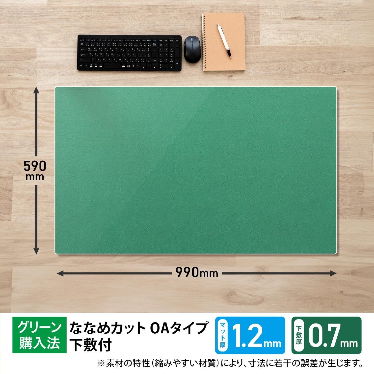プラス デスクマット マウス対応 下敷付 エコノミータイプ サイズ 多数 マット めくれにくい インクが移りにくい 1.9㎜厚 薄手 990×590㎜ 透明+グリーン DM-106EW 41-027 | BASE SHOP