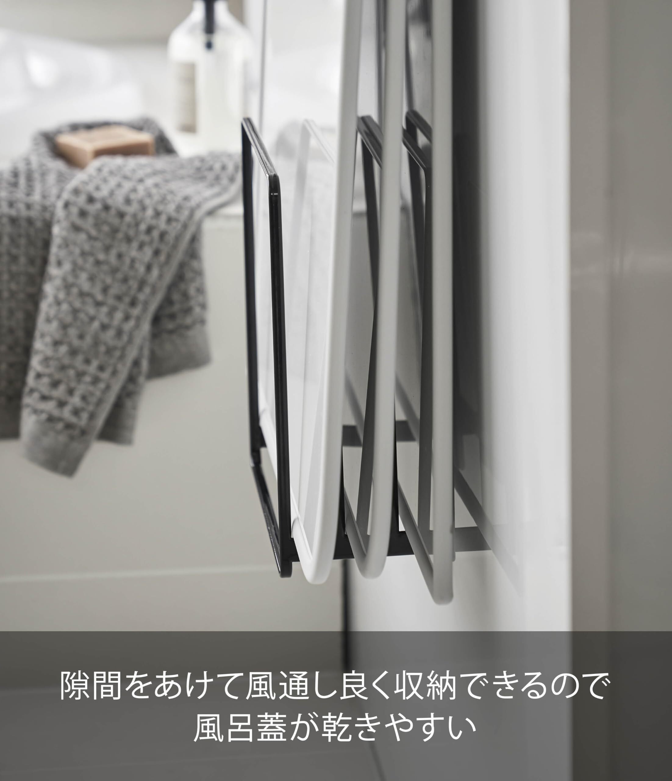 隙間を空けて乾きやすく干せる清潔な風呂蓋スタンド!