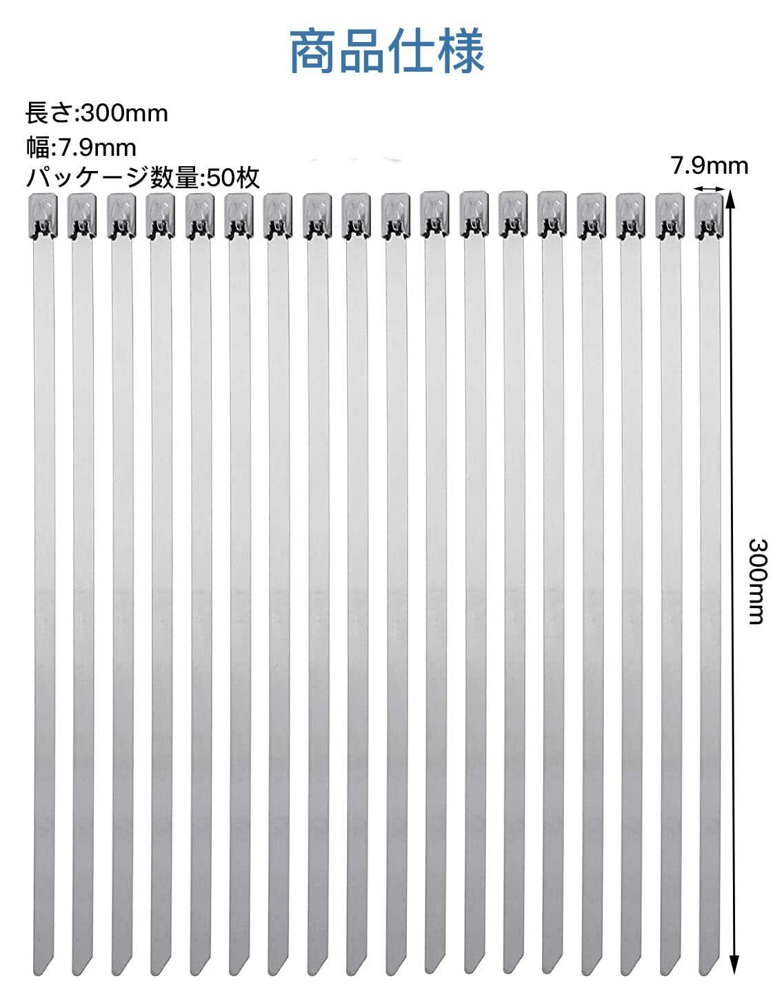 LOYELEY ステンレス結束バンド 7.9mm×300mm/7.9×550mm 固定結束バンド 304ステンレス製 タイラップ 耐熱性 耐久性 絶縁性 耐紫外線 屋外用 屋内用 (7.9mm*300mm 50本) | BASE SHOP