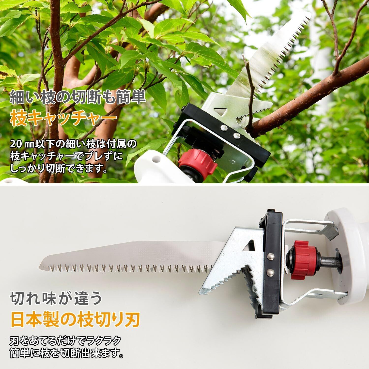 ●付属品:本体一式、延長コード10m ×1、210mm枝切り刃(日本製)×1、枝キャッチャー×1、保護メガネ×1、肩掛けベルト×1、コードストラップ ×1、ベルトフック ×1、取扱説明書。