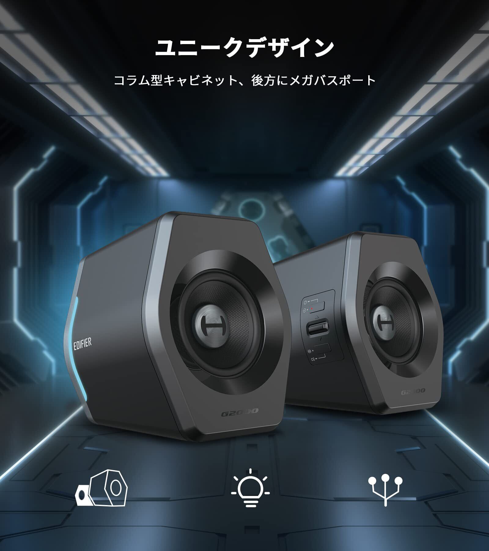 「EDIFIER直営店」Edifier G2000 ゲーミング スピーカー パソコン用 Bluetooth5.1 32W Hi-Fi音質 有線 Bluetooth/USB/AUX接続 PC対応 LEDライド付き 小型 2台一組 | BASE SHOP