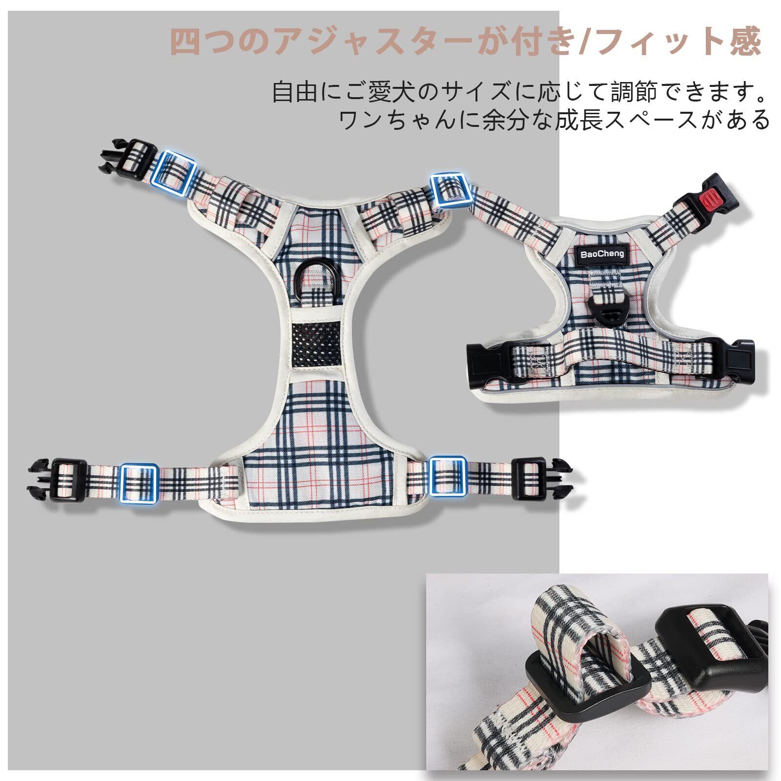 [2025最新型犬ハーネス]BaoCheng 犬用胴輪 小型犬/中型犬/大型犬ハーネス 犬用胴輪 引っ張り防止 アタマを通さず 咳き込み軽減 サイズ調整可能 夜間反射材 抜けない 通気性 簡単着脱 おしゃれ 安全 しつけ用 訓練 歩行補助 散歩 可愛い(ベージュチェック柄,S) | BASE SHOP