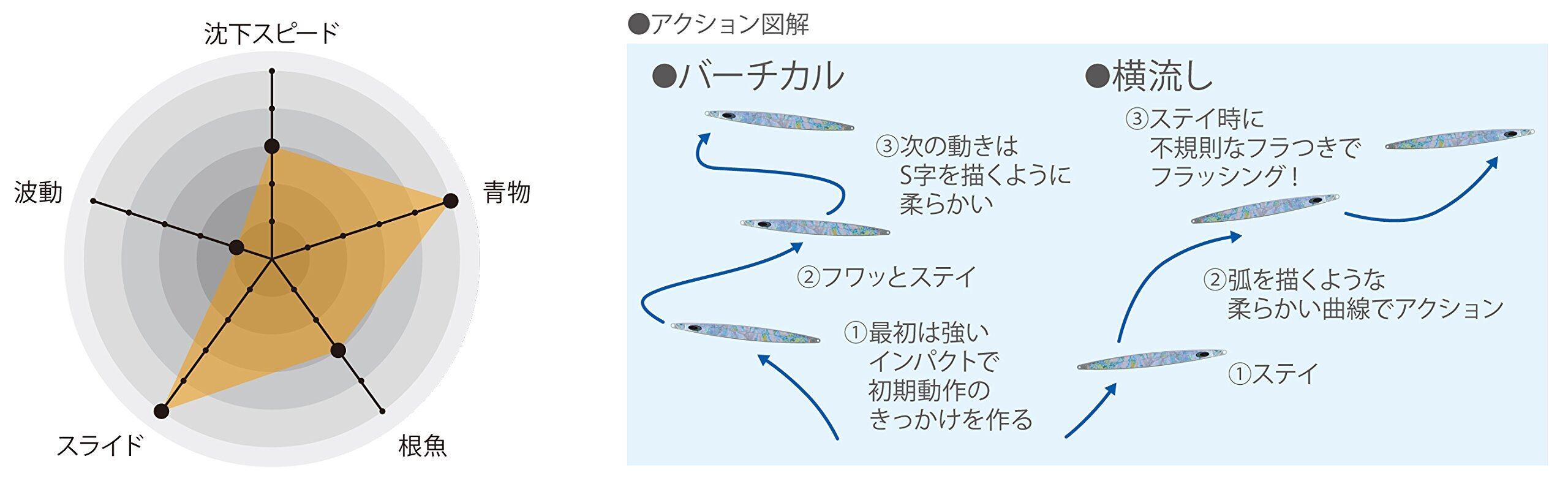 鉄ジグ特有のスライド性能はさらに昇華され、フォールでのアピールと相まって理想的なアクションを実現します。