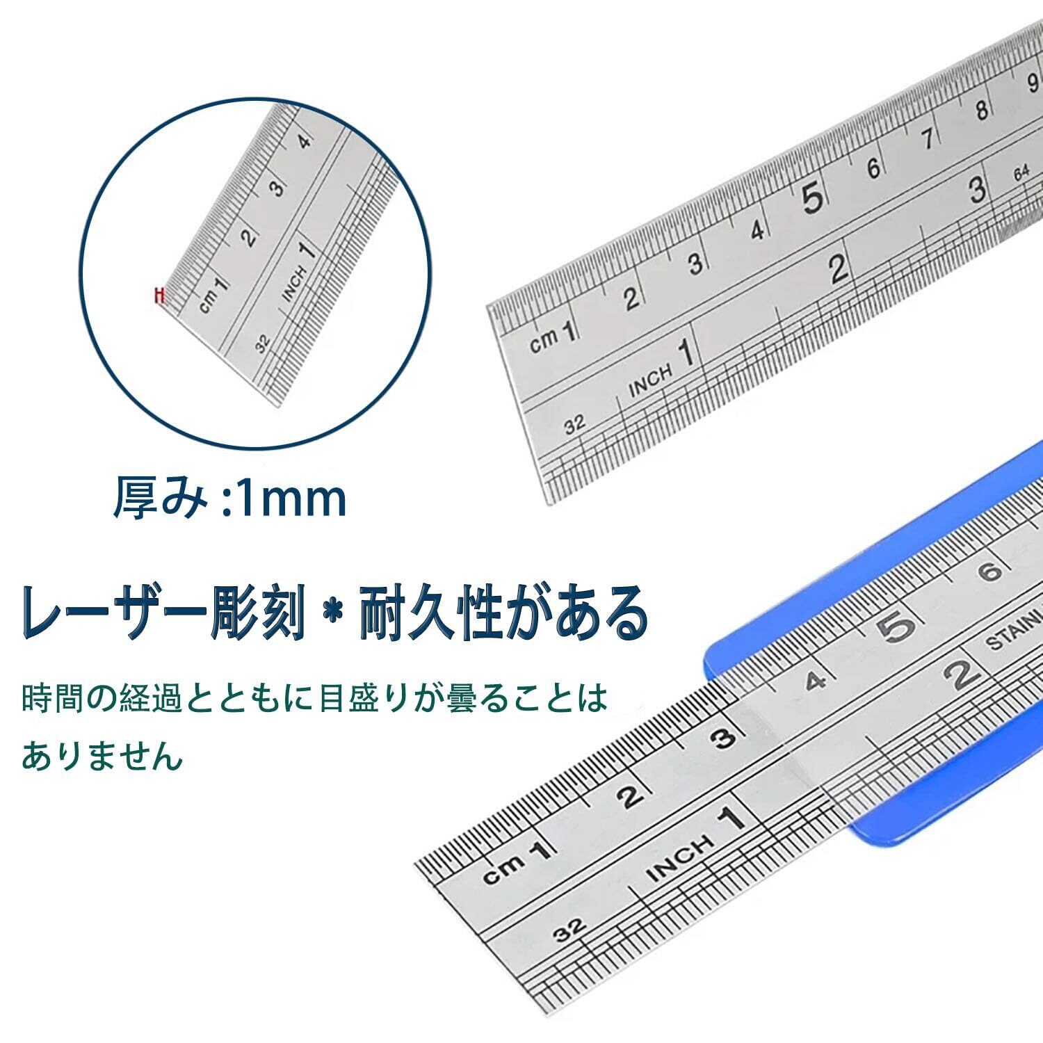 ステンレス加厚さ(センチメートル・インチ)両面製 直定規シリーズ