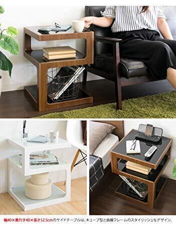 スタイリッシュなデザイン。幅40×奥行き40×高さ52.5㎝のサイドテーブルは、キューブ型と曲線フレームのスタイリッシュなデザインです。