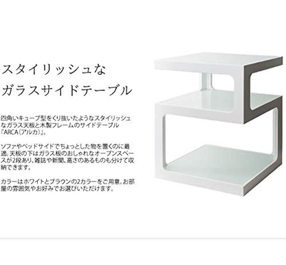 四角いキューブ型をくり抜いたようなスタイリッシュなガラス天板と木製フレームのサイドテーブル『ARCA(アルカ)』