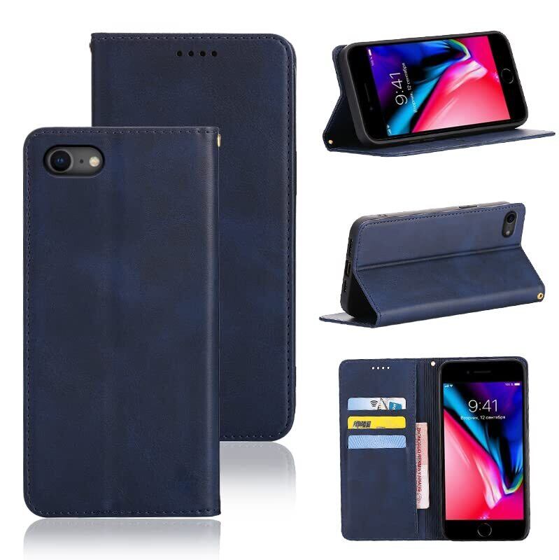 適用 iPhone SE (第2世代/第3世代) ケース 手帳型 (4.7インチ対応) iphone8 用 iphone7 用 手帳型 ケース カバー PUレザー カード収納 財布型 耐衝撃 ケース マグネット スタンド機能付き 5色 (適用 iPhone 7/8/SE2(2020)/SE3(2022)ケース 手帳型) (深い青)