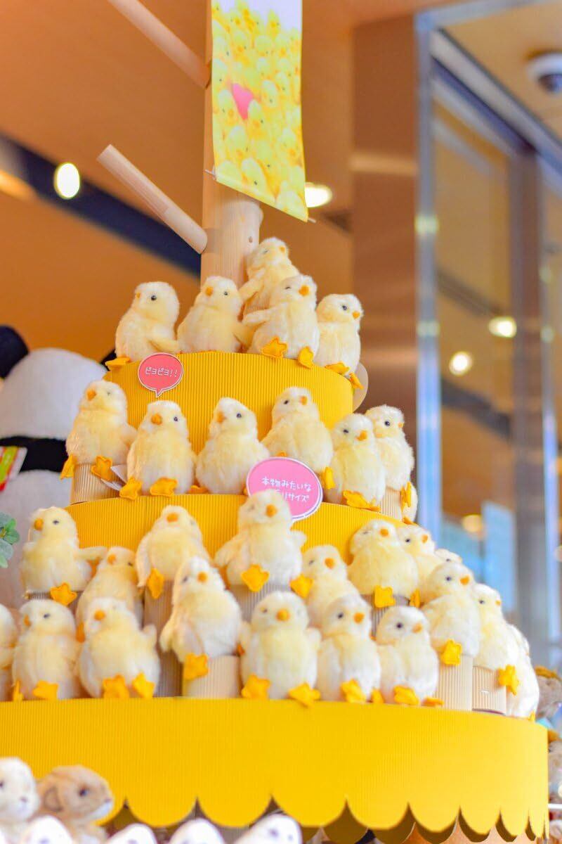 ふわふわの手触りが気持ちいいひよこのぬいぐるみ。つぶらな目や足もキュート。