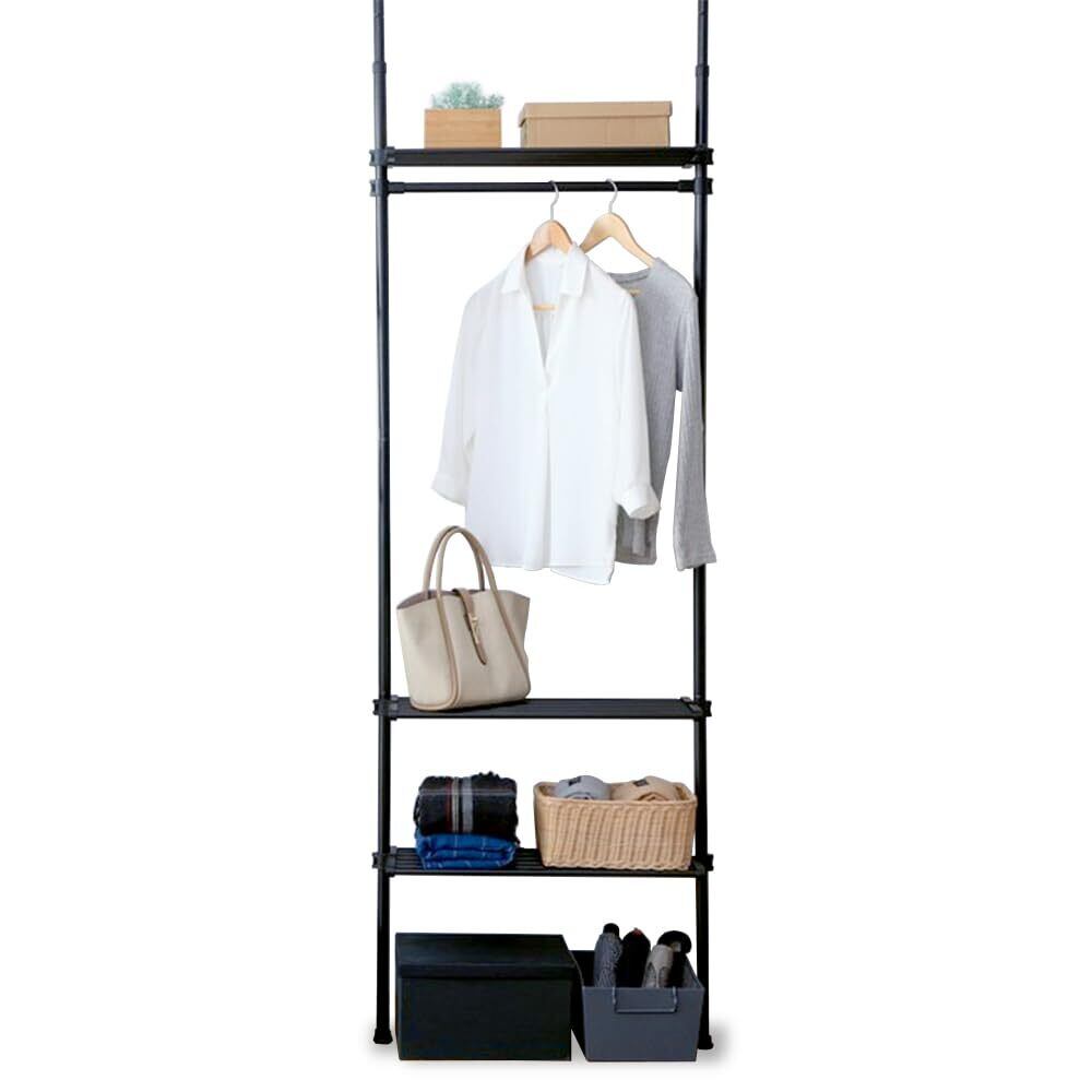 【洗面所でのタオルハンガーにも】アイリスプラザ ラック 棚 壁面 耐荷重各5kg 天井170~260cm対応 幅80 スリム ブラック TWR-800