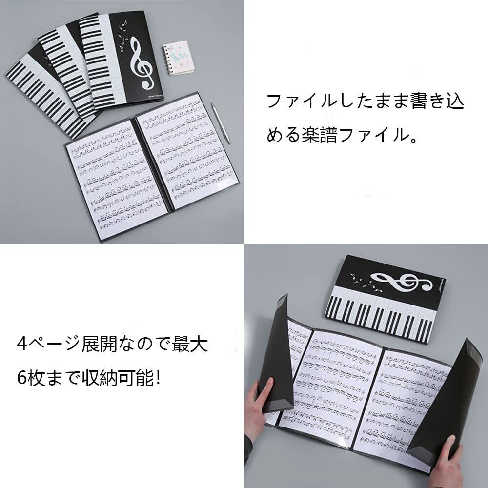 サムコス 楽譜ファイル A4サイズ 反射しない 4面 6枚収納 楽譜を 取り出さずに書き込み可能 ファイル 電子ピアノ アクセサリー (ブラック 1)