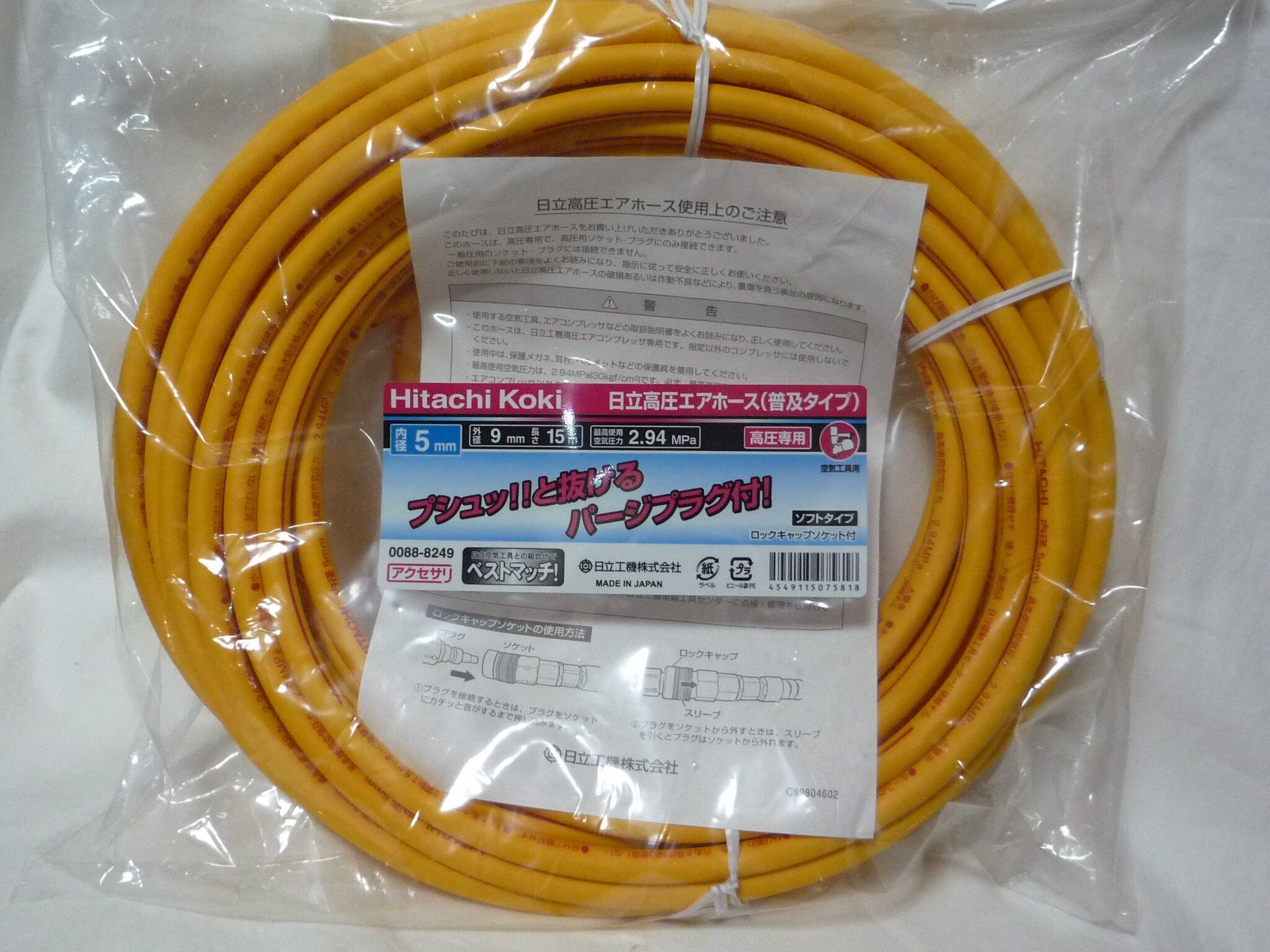 HiKOKI(ハイコーキ) 高圧エアホース(ロックキャップソケット) 15m 普及タイプ 内径5mm パージプラグ付 0088-8249