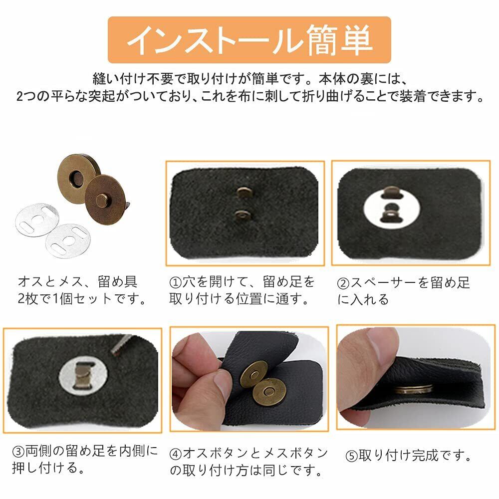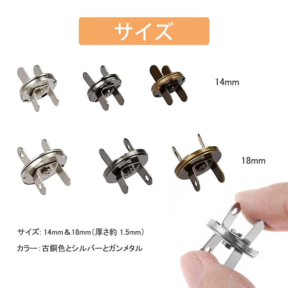 YFFSFDCマグネットボタン差し込み式 マグネットホック 磁気ボタン ハンドメイド 手芸 強力超薄型レザークラフト バッグ14mm 18mm 30組 3色古銅色 銀色ガンメタル | BASE SHOP