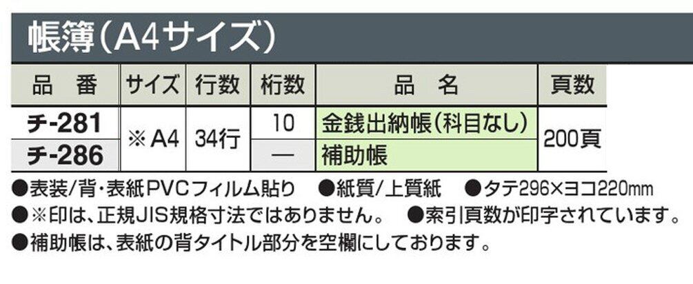 コクヨ(KOKUYO) 帳簿 金銭出納帳 科目なし A4 200枚 チ-281