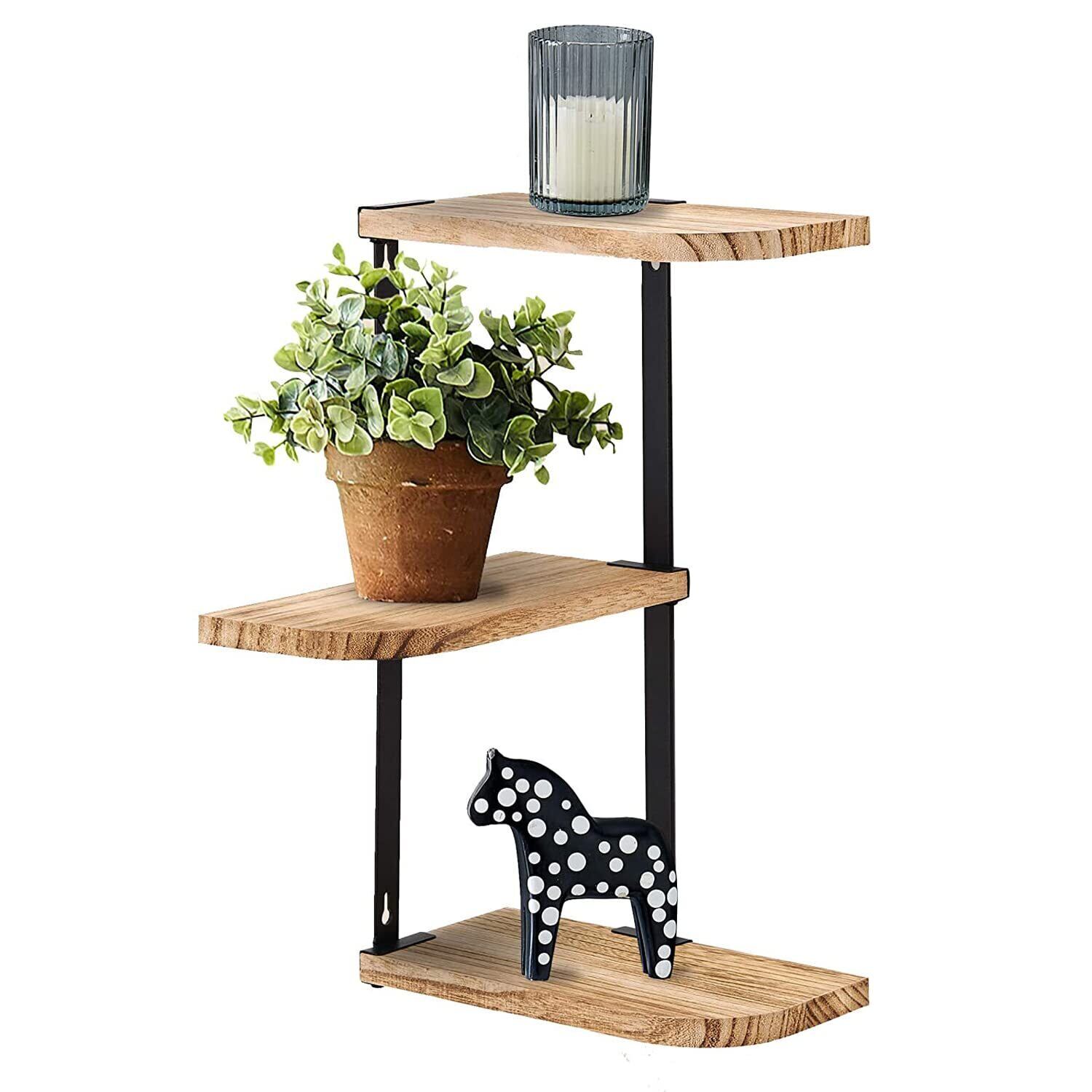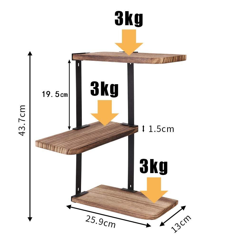 UNHO ウォールシェルフ 壁 棚 コーナー 収納 ラック 3段 壁掛けラック 壁掛け棚 木製 おしゃれ 飾り棚 DIY ウォールラック キッチン 洗面所 リビング トイレ 壁面 収納 省スペース