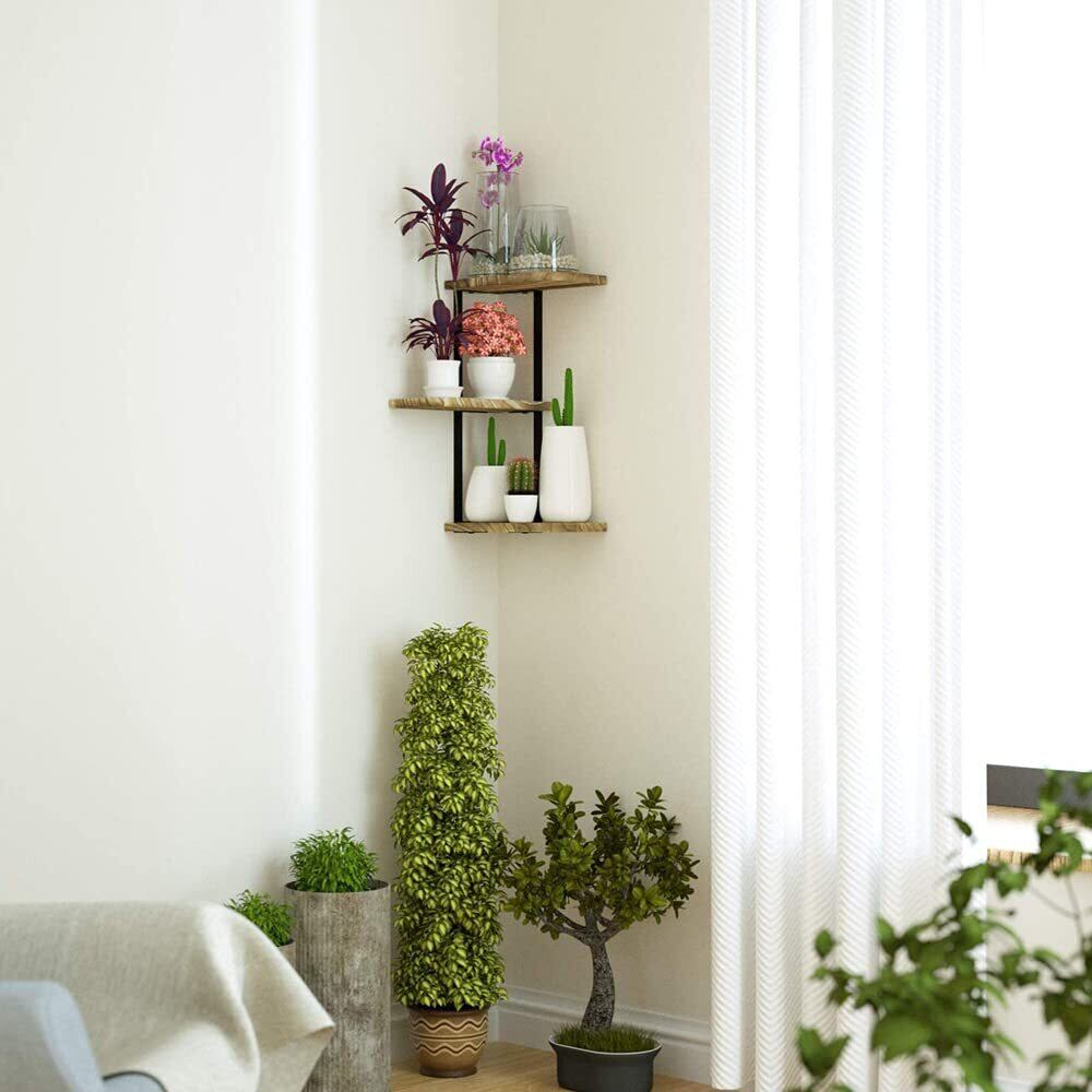 UNHO ウォールシェルフ 壁 棚 コーナー 収納 ラック 3段 壁掛けラック 壁掛け棚 木製 おしゃれ 飾り棚 DIY ウォールラック キッチン 洗面所 リビング トイレ 壁面 収納 省スペース | BASE SHOP