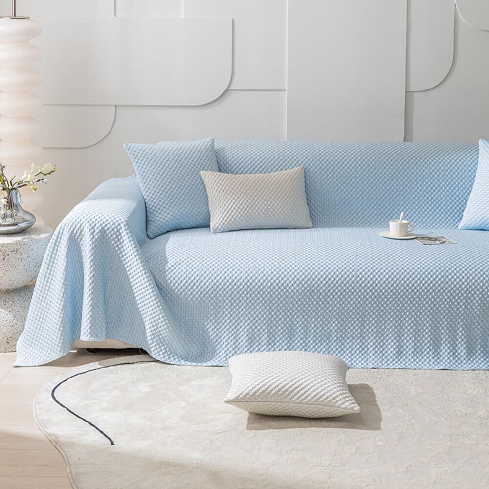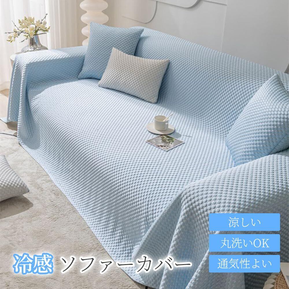 JEMAジェマ ソファーカバー マルチカバー 接触冷感 マルチカバー ソファーシーツ ひんやり 夏用ブランケット 長方形 大判 1-2人掛け 北欧風 おしゃれ 犬猫用 傷防止 爪とぎ防止 無地 柔らかい 汚れ防止 多機能 防塵カバー テーブルクロス テーブルカバー ソファー ソファー保護 マルチクロス シンプル 洗濯可 人気 雑貨 四季通用 130x180cm ブルー | BASE SHOP