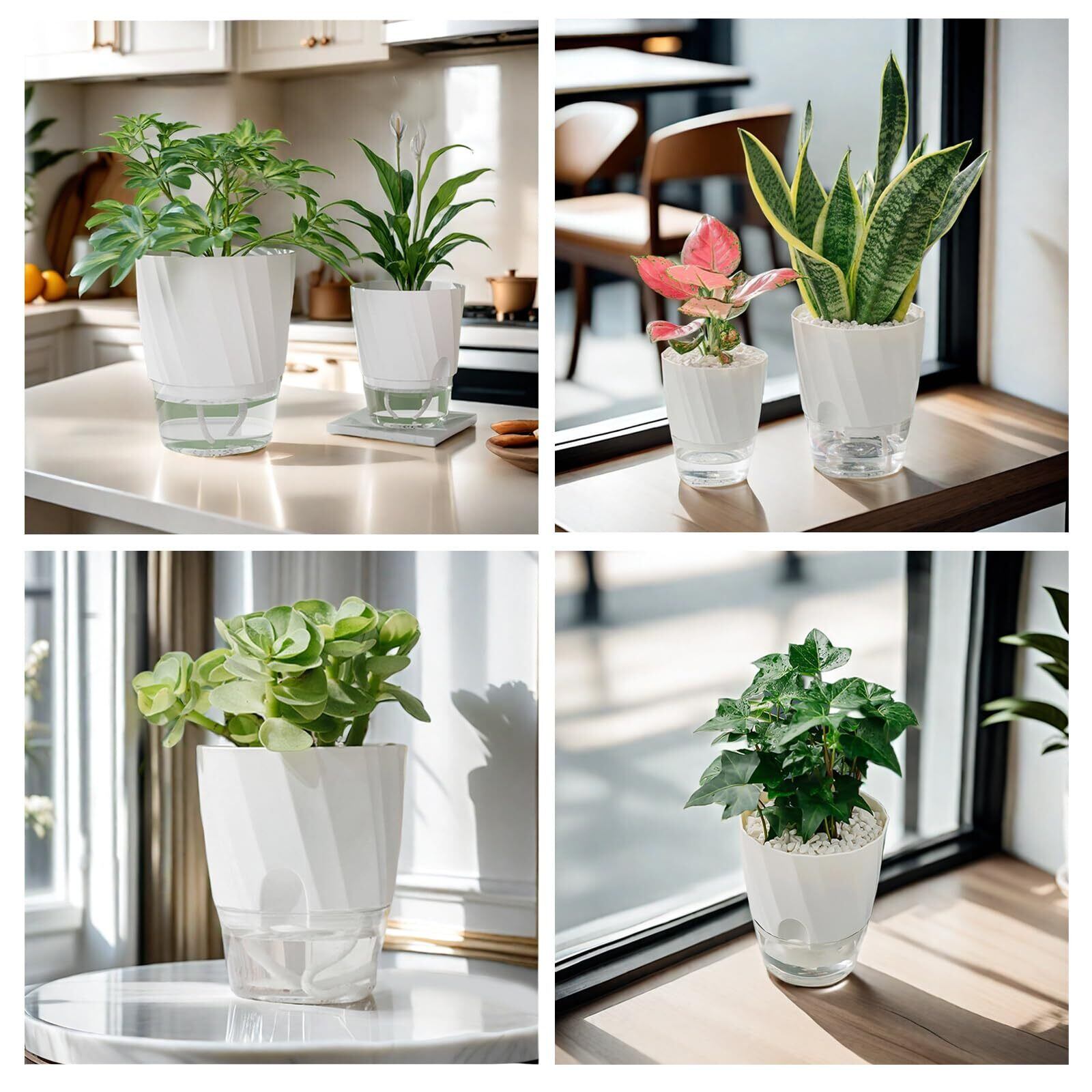 植木鉢 ハイドロカルチャー 鉢 水耕栽培 観葉植物 1個 2個 自動給水 給水ひも付き プラスチック プランター 底面給水鉢 室内観葉植物 水耕栽培 リビング デスク キッチン トイレ 玄関 室内 多肉植物 花 カクタス用 (ホワイト, L) | BASE SHOP