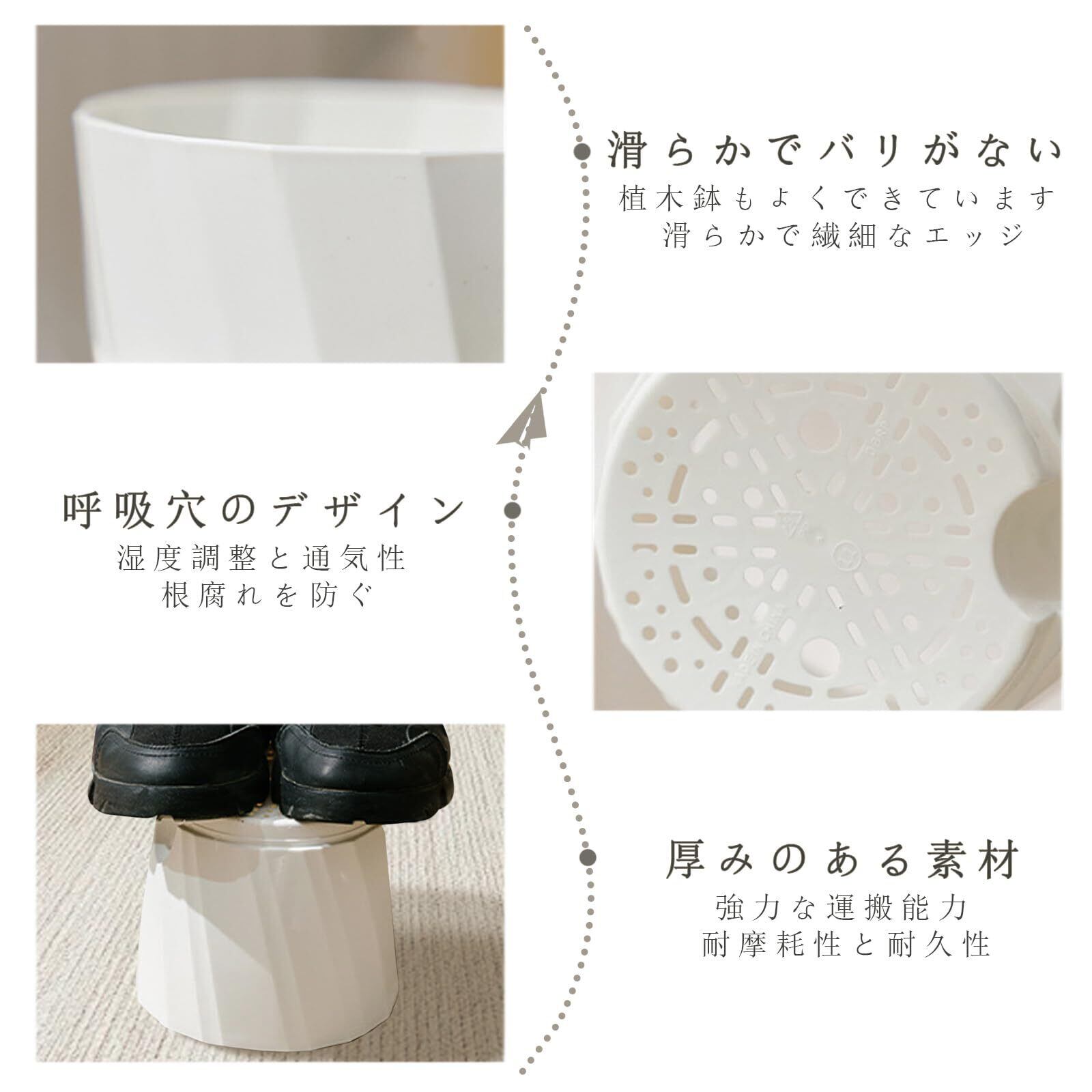 【素材】装飾的な植木鉢は、非常に耐久性があり、屋内または屋外での使用に適した高品質のPP+PETプラスチック素材で作られています。軽くて持ち運びやあつかいも楽で、ガーデニング初心者さんにもオススメです。