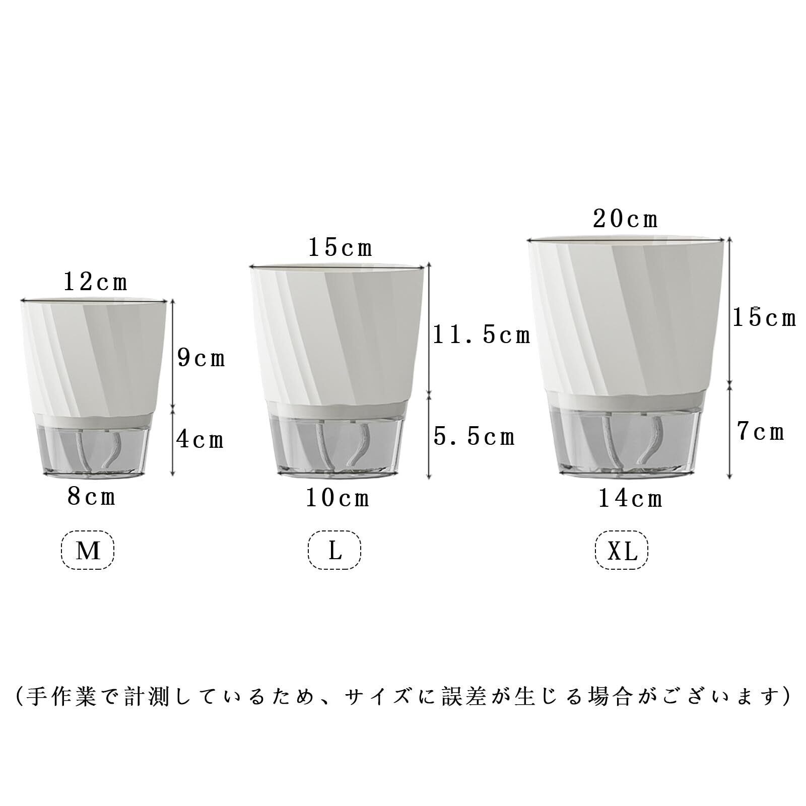 植木鉢 ハイドロカルチャー 鉢 水耕栽培 観葉植物 1個 2個 自動給水 給水ひも付き プラスチック プランター 底面給水鉢 室内観葉植物 水耕栽培 リビング デスク キッチン トイレ 玄関 室内 多肉植物 花 カクタス用 (ホワイト, L)