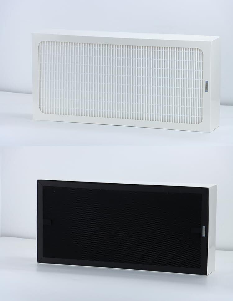【商品仕様】材質:ポリプロピレン、ポリエチレ。サイズ:250X520X95mm。 ホコリや花粉など空気中に漂う様々な細かい粒子を除去。