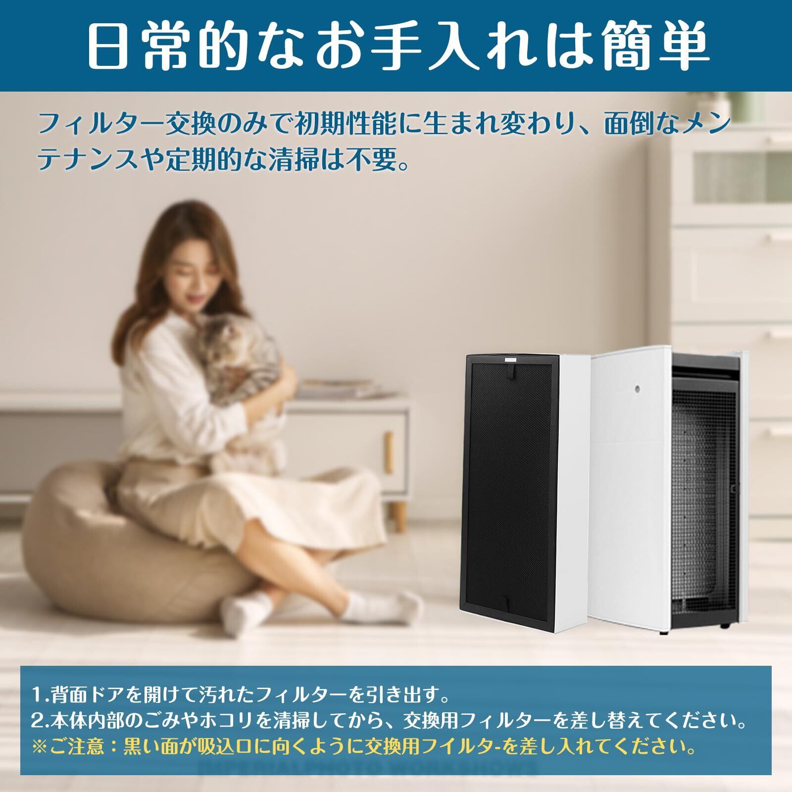 【お手入れ不要】フィルターが汚れると空気清浄機の性能は著しく低下します。高い清浄能力を長く維持するためには、汚れたフィルターは定期的に交換する事が大切です。交換するだけで、わざわざフィルター自体を掃除したり、汚いホコリに触れる必要はありません。