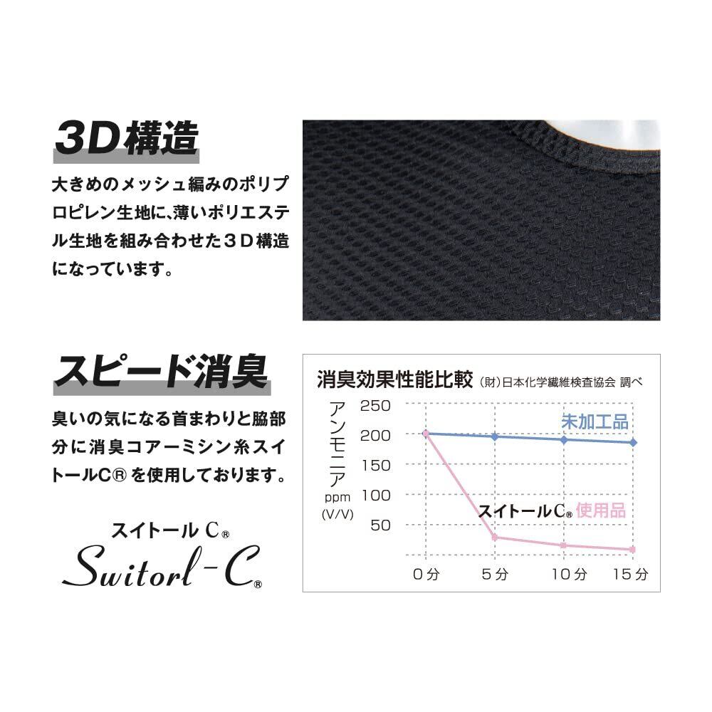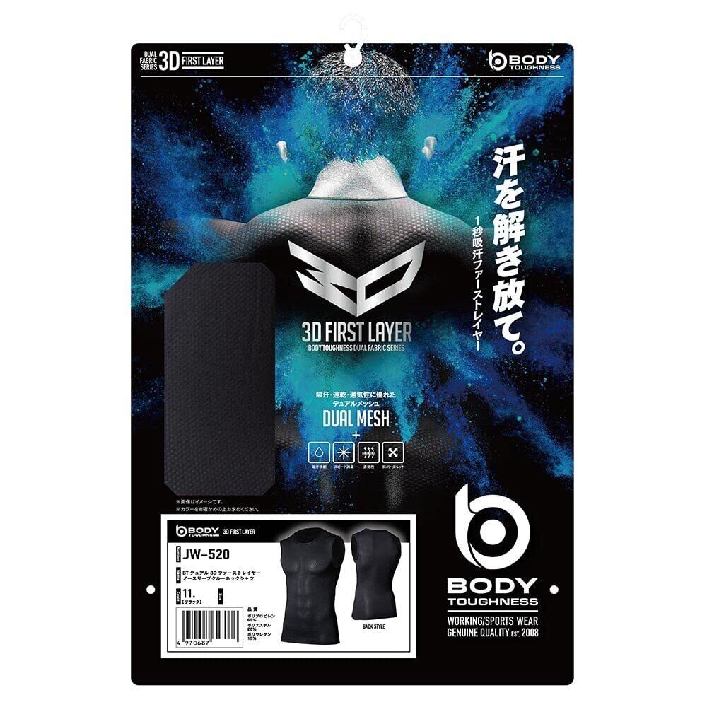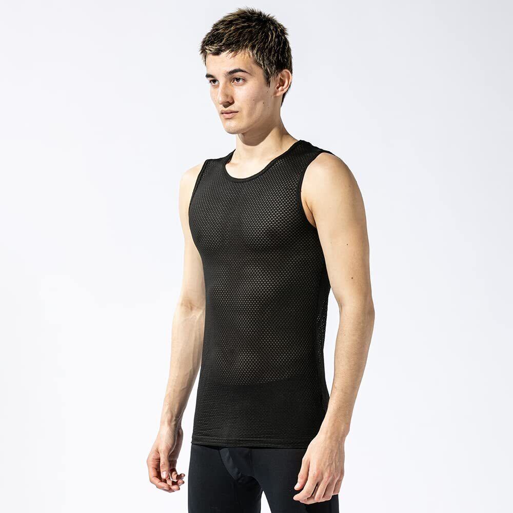 おたふく手袋 オールシーズンインナー ノースリーブ 丸首 3Dファーストレイヤー [吸汗速乾 消臭 メッシュ コンプレッション メンズ] JW-520 ブラック L