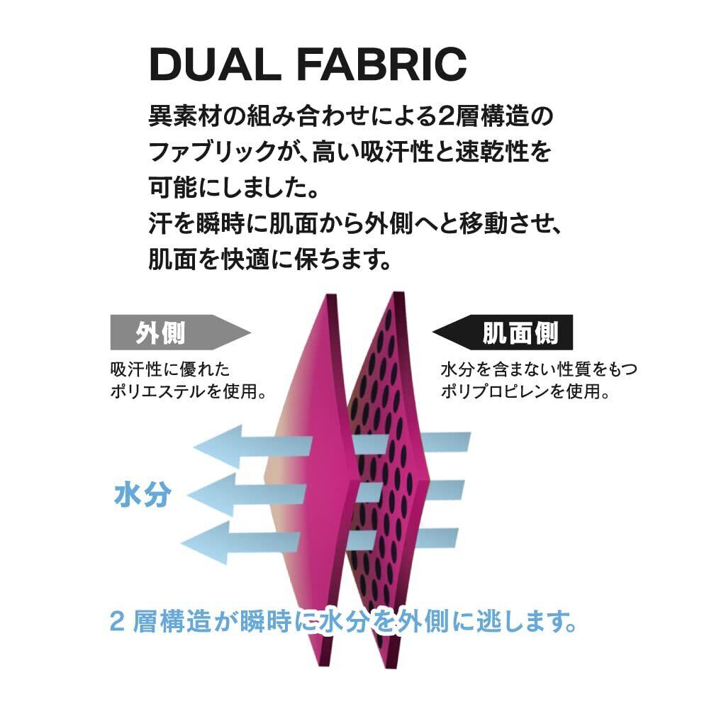 ●シャツやコンプレッションインナーの下に着用するオールシーズン用ファーストレイヤー。●3D構造の2層ファブリックが、汗冷えやべたつきなどを軽減。●異素材の組み合わせによる2層構造のファブリックが、高い吸汗性と速乾性を可能にしました。●汗を瞬時に肌面から外側へと移動させ、肌面を快適に保ちます。●大きめのメッシュ編みのポリプロピレン生地に、薄いポリエステル生地を組み合わせた3D構造になっています。