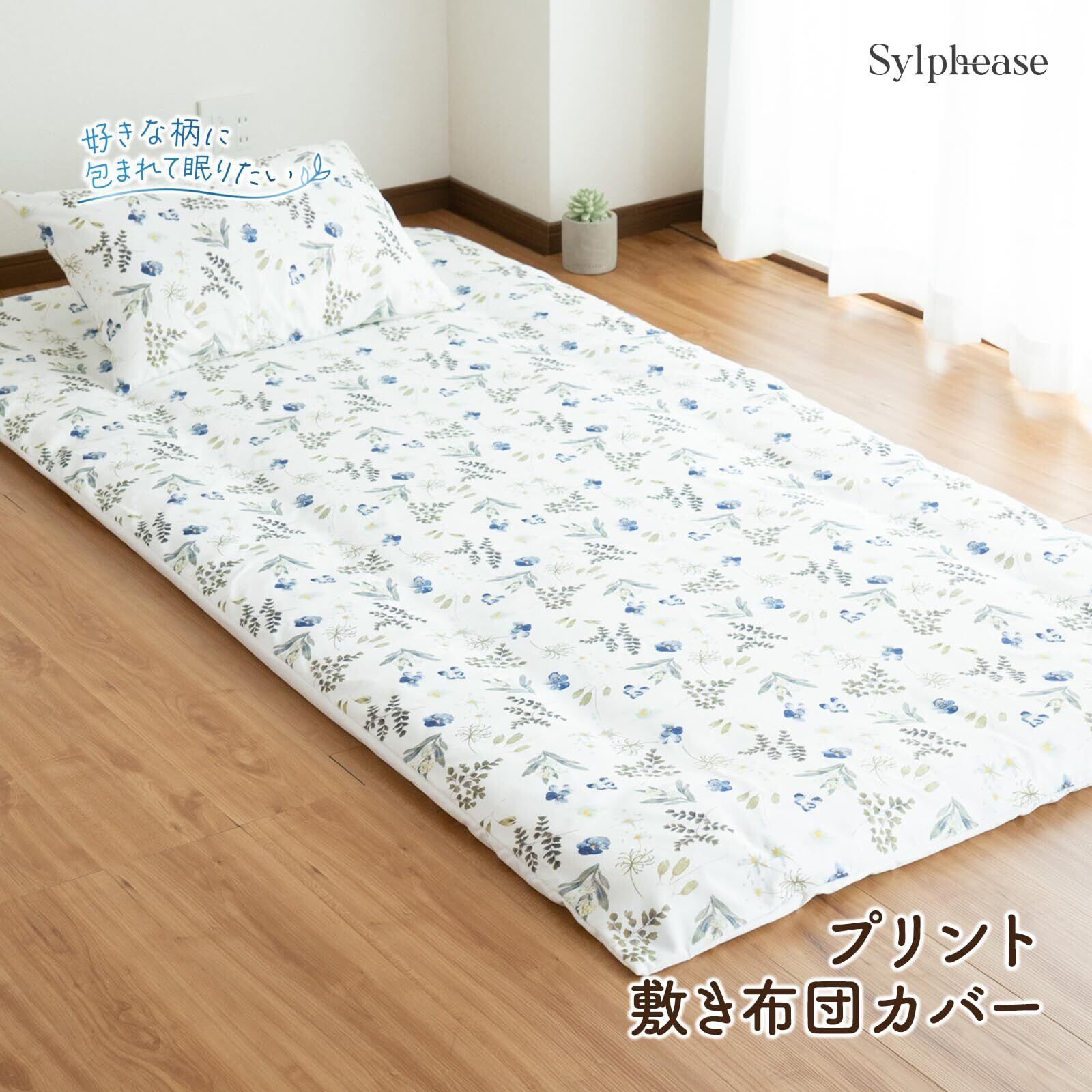 シルフィーズ 敷き布団カバー シングル グリーン イングリッシュガーデン 105×215cm おしゃれ 柄 全開ファスナー 洗濯 やわらか シンプル