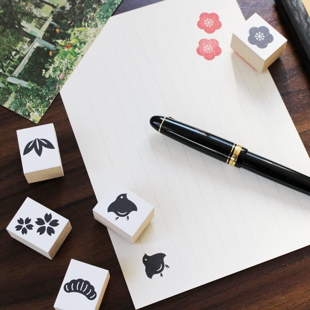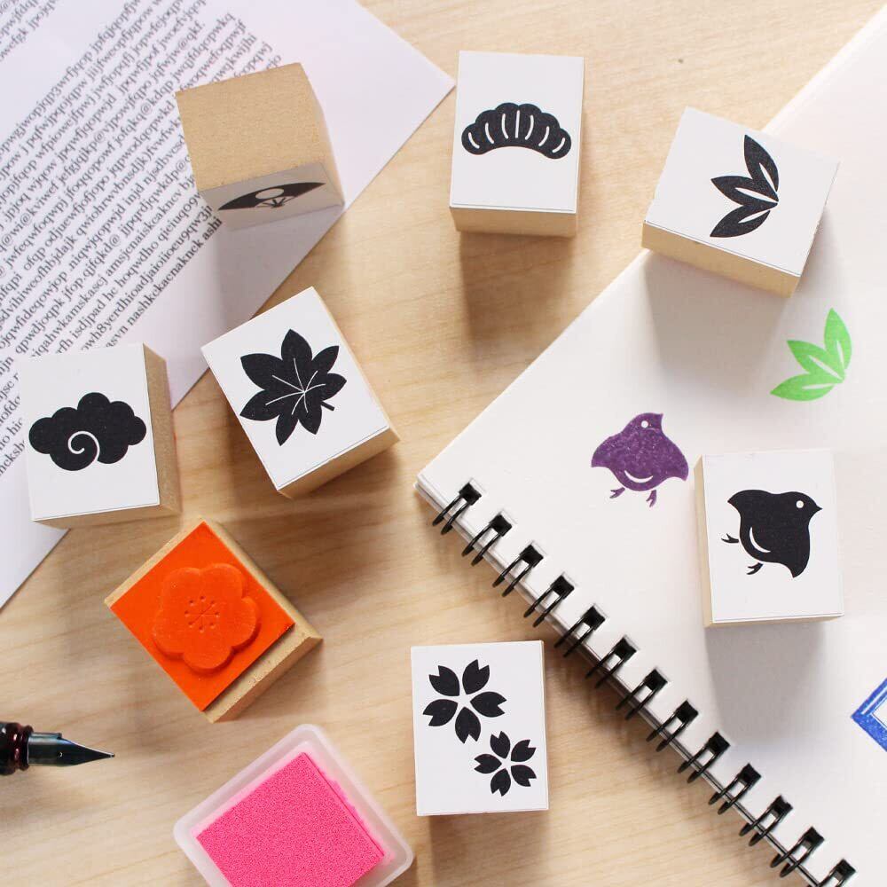 スタンプ かわいい おしゃれ ハンコ 木製 ゴム印 セット 便利 日本製 エコ 素材 和風 もみじ 千鳥 松 竹 梅 さくら 桜 雲 便箋 一筆箋 年賀状 プレゼント 日本製 (#32) | BASE SHOP