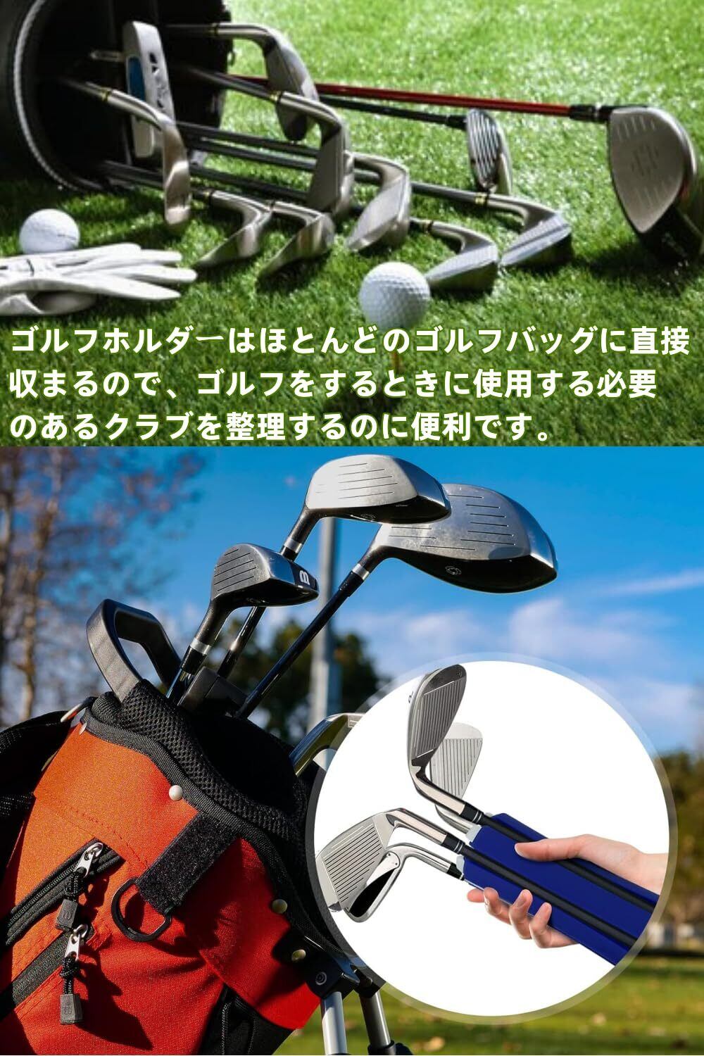 【便利な収納】ゴルフホルダーはほとんどのゴルフバッグに直接収まるので、ゴルフをするときに使用する必要のあるクラブを整理するのに便利です。