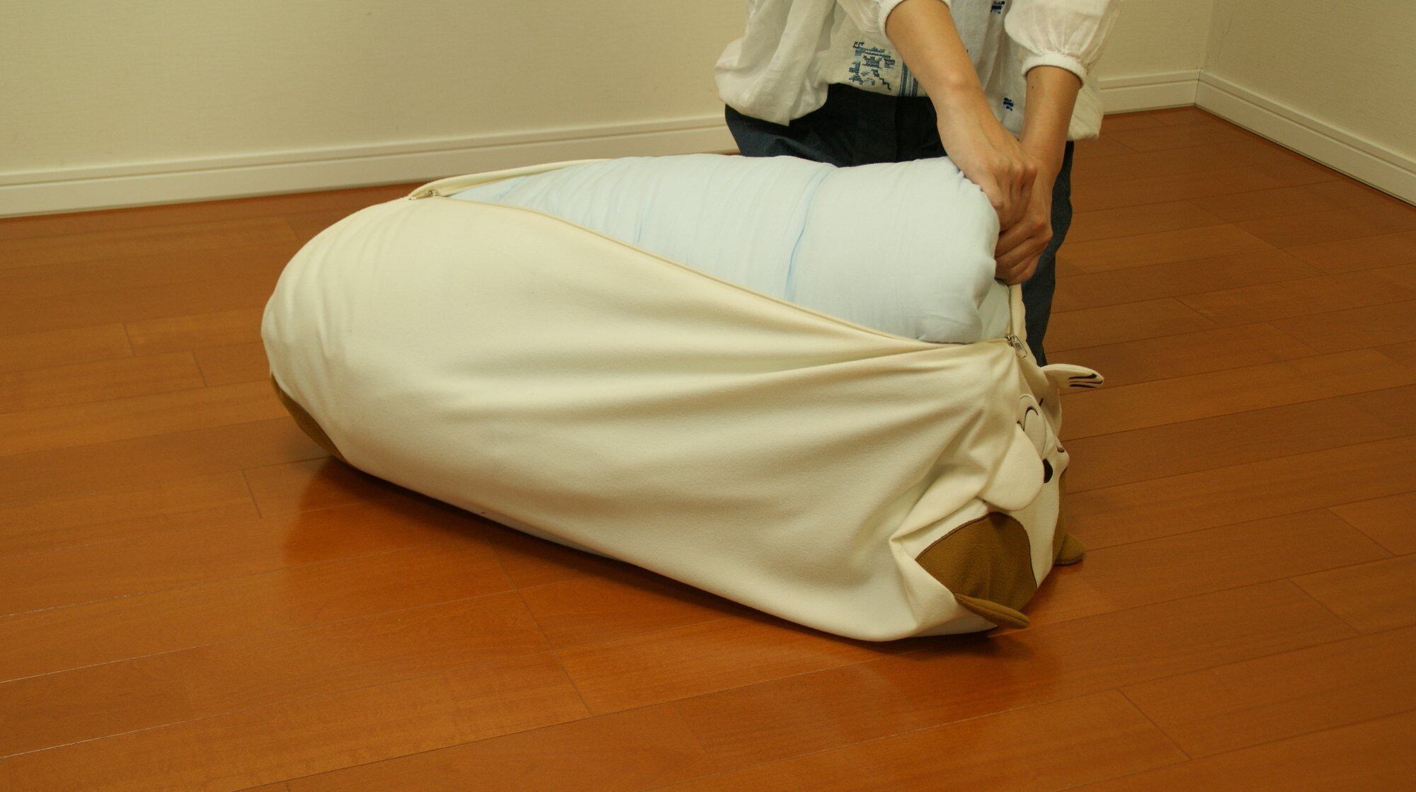 「見せる収納」タイプのシングル掛けふとん専用収納袋です。