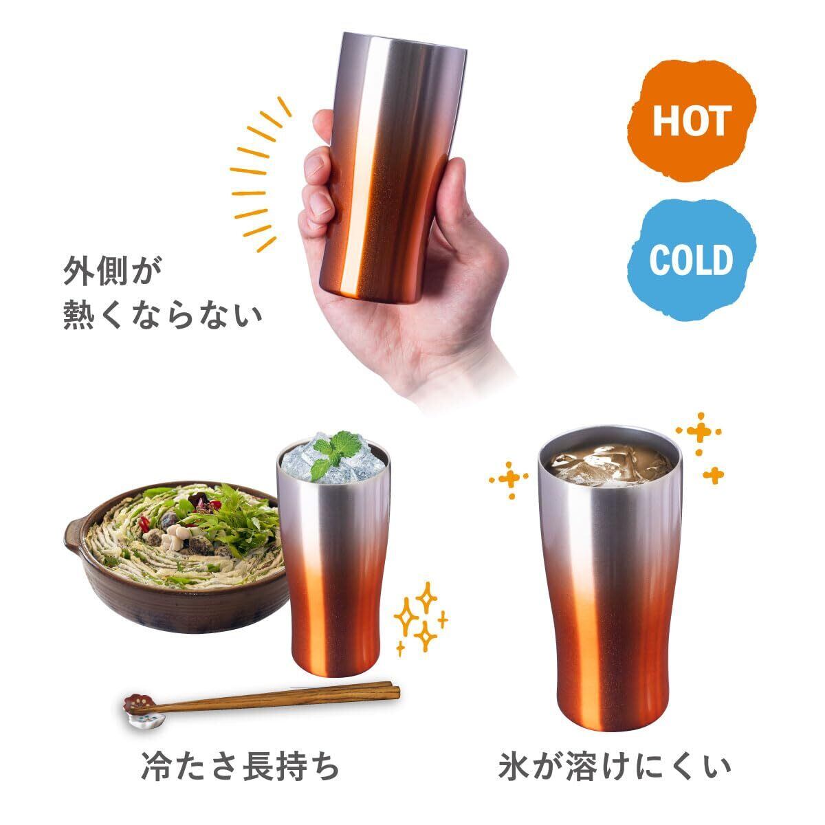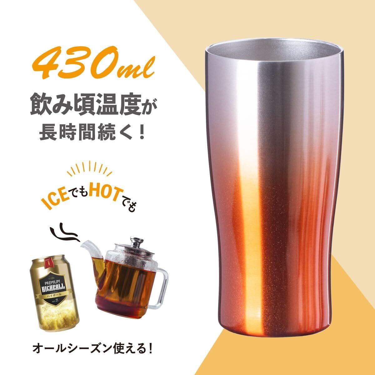 Atlas アトラス 保温保冷 タンブラー 430ml グラデーション アンバーカラー 2個 ペア真空断熱 ハイボール ASTG-433AC2P