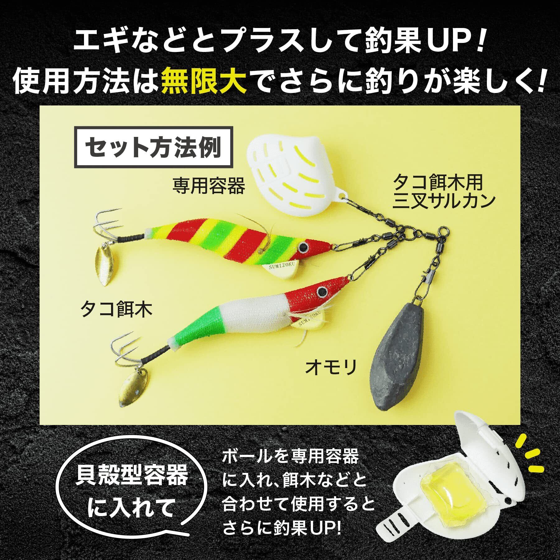【タネ・マキ(Tane Maki)】 タコ釣りボール (12粒セット 貝殻容器2個付 シール入り) 釣り餌 タコ 集魚効果 ルアー 仕掛け タコエギのアピール力UP 初心者・ベテラン向け 釣具 餌 使いやすい | BASE SHOP