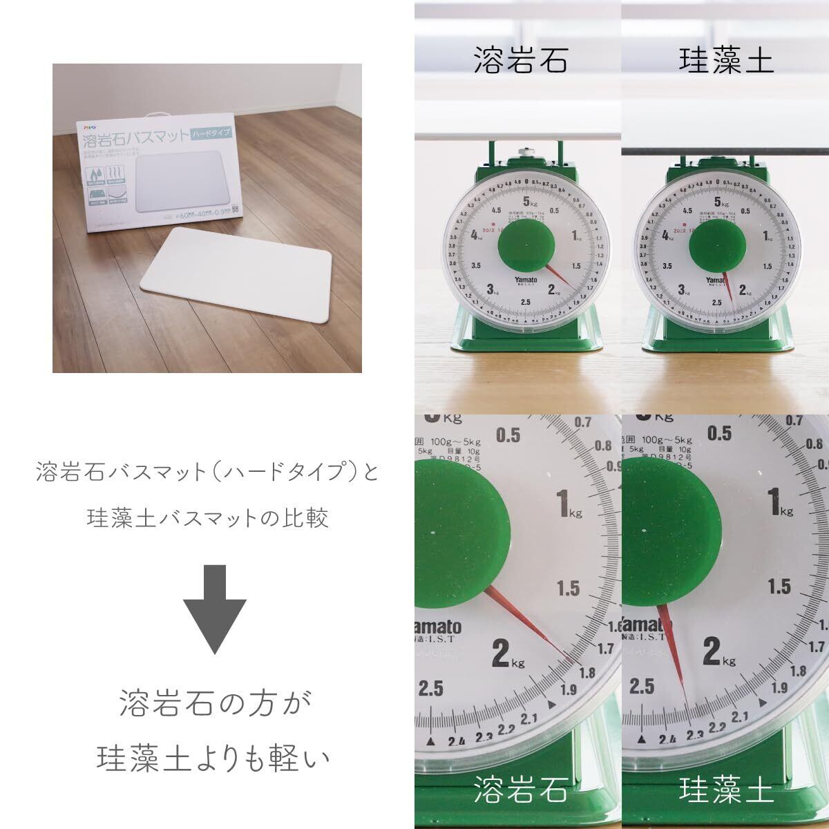 アサヒペン 溶岩石バスマット ハードタイプ Lサイズ(幅60cm×長さ40cm) ホワイト YH-01L 吸水性 速乾性 防カビ 消臭 表面サラサラ