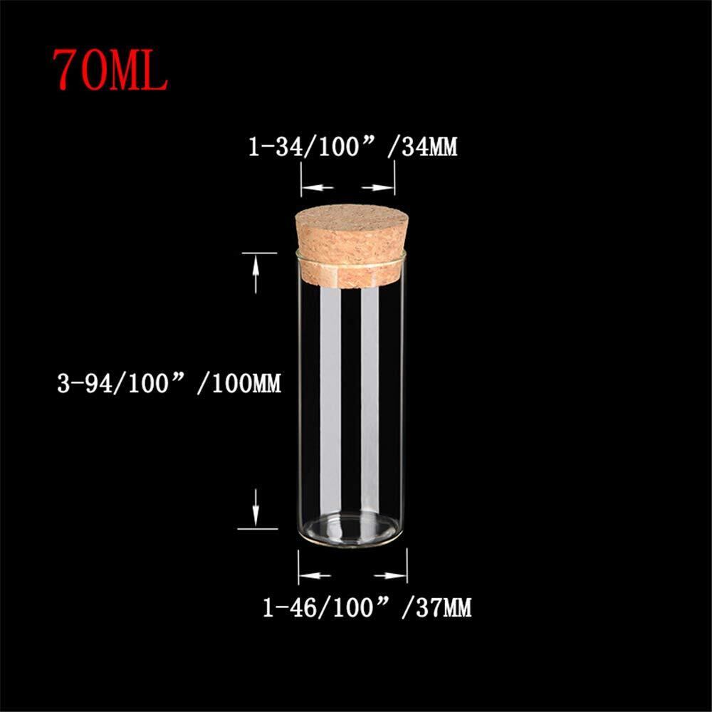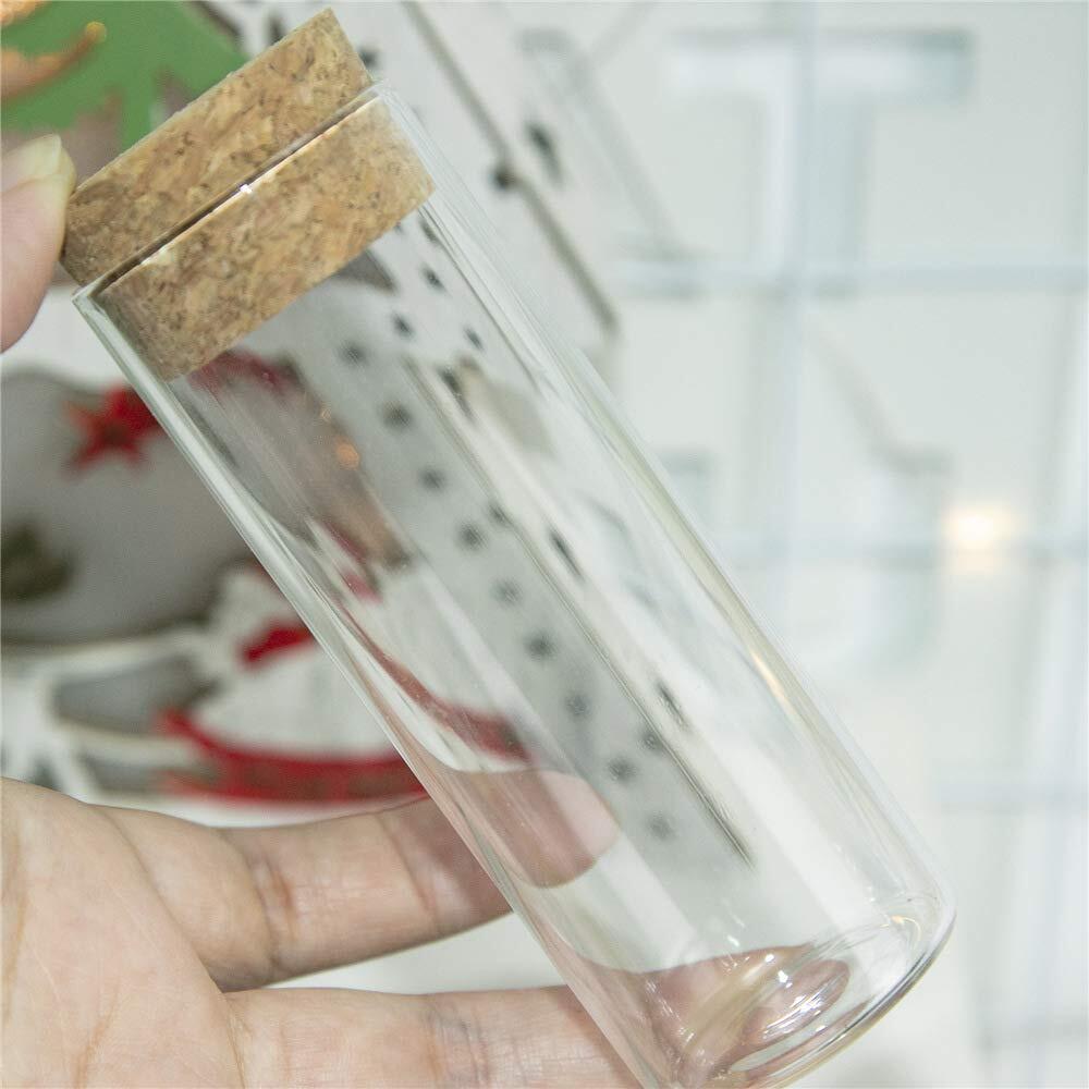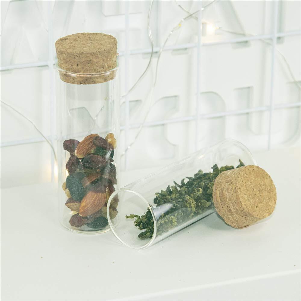 容量は70ml、外径は37 mm、高さは100 mm、開口34 mm 透明なガラス瓶とコルク栓で構成されています。