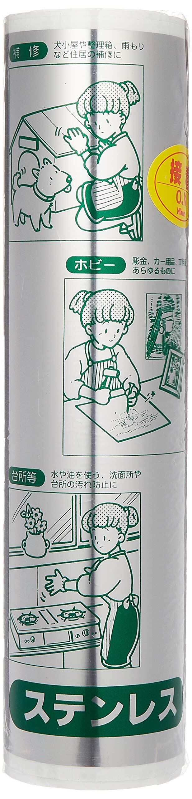 【商品名】 光 ステンレス板 ロール巻 SUS 0.1×300×920mm HS139T 【商品説明】 サイズ:300×920×0.1mm のり付
