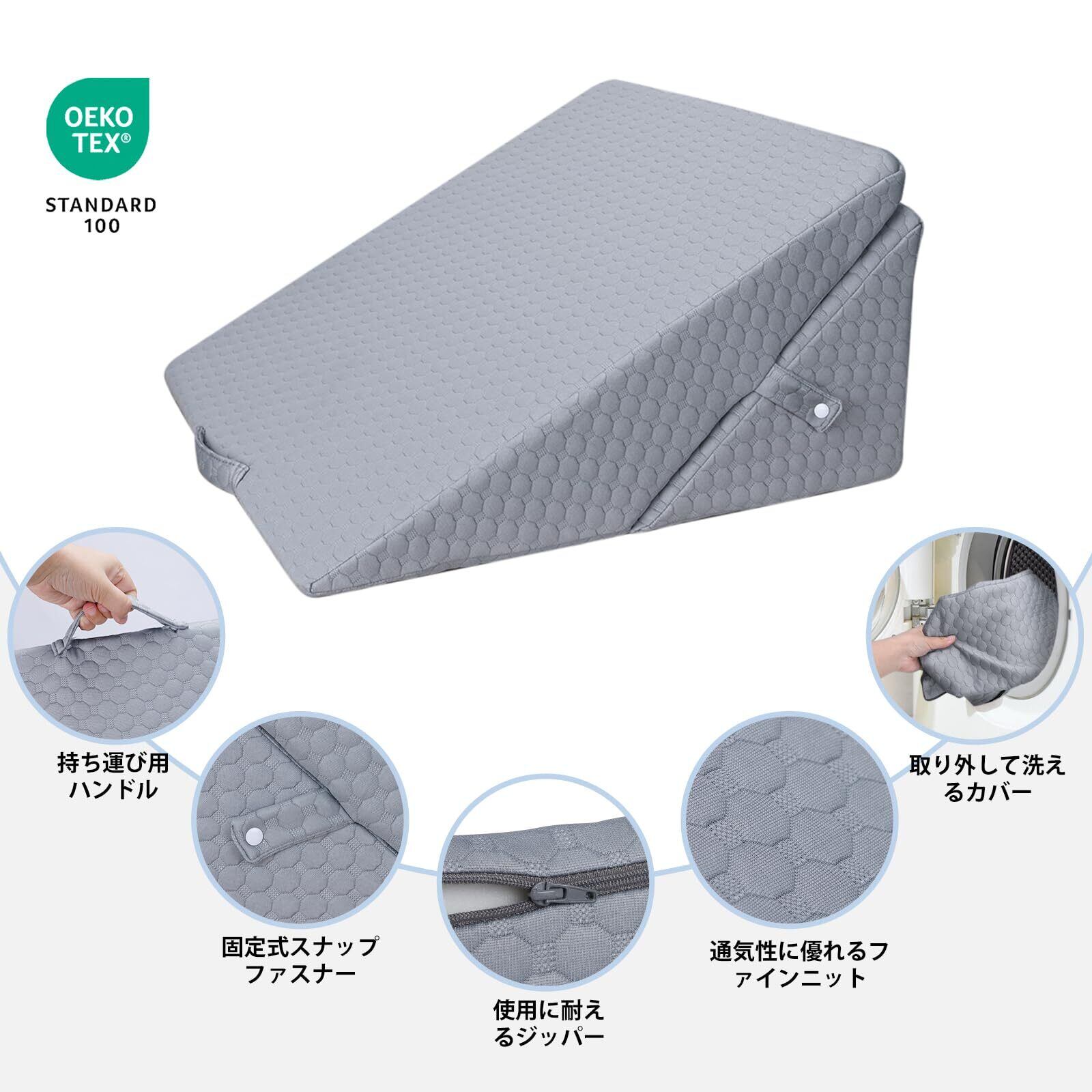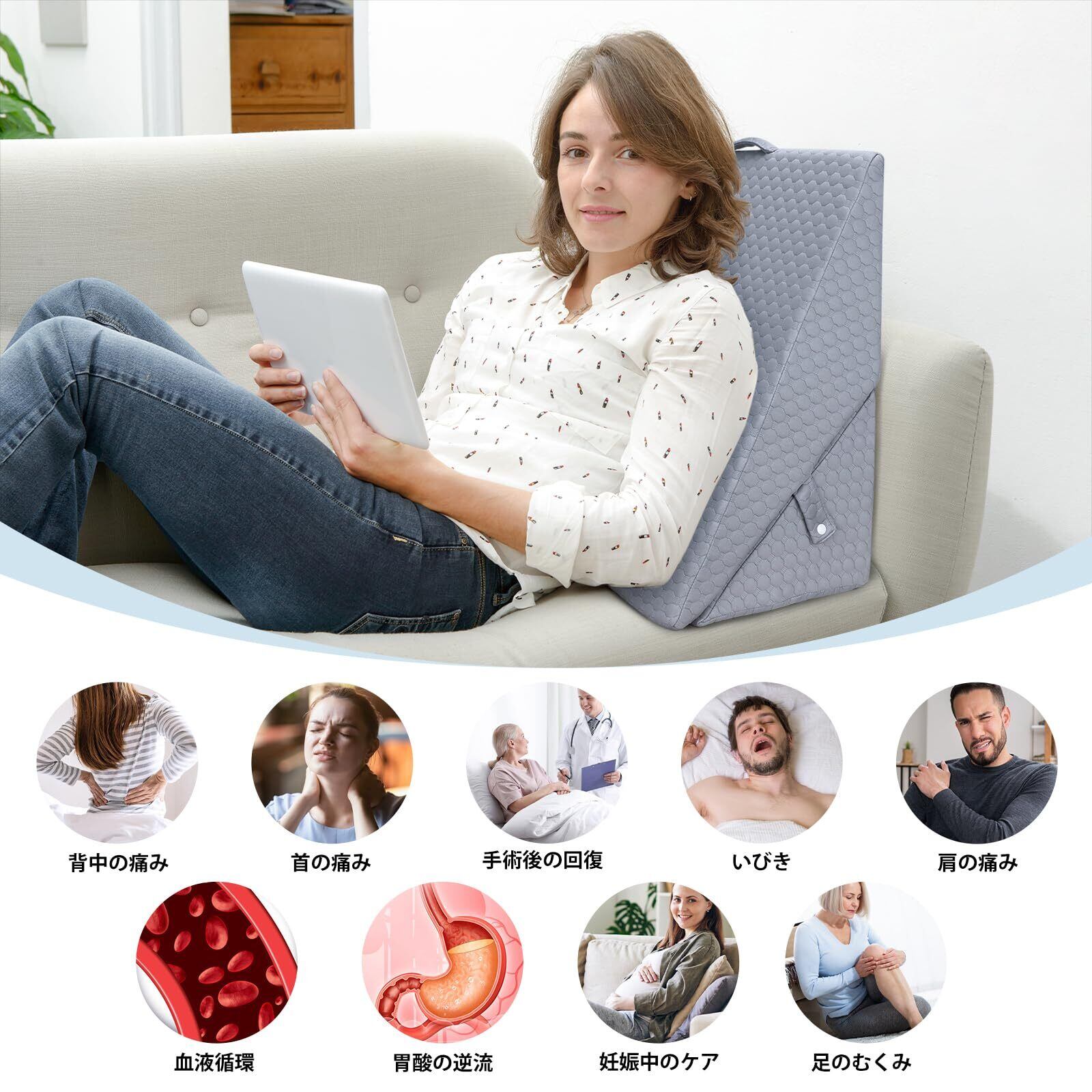 Azamia 三角クッション 三角枕 背もたれ クッション 傾斜枕 足まくら なだらか枕 横向き寝 折りたたみ式 腰枕 快眠サポート 大きい 高反発 ウェッジ枕 体位変換 介護 イビキ改善, グレー