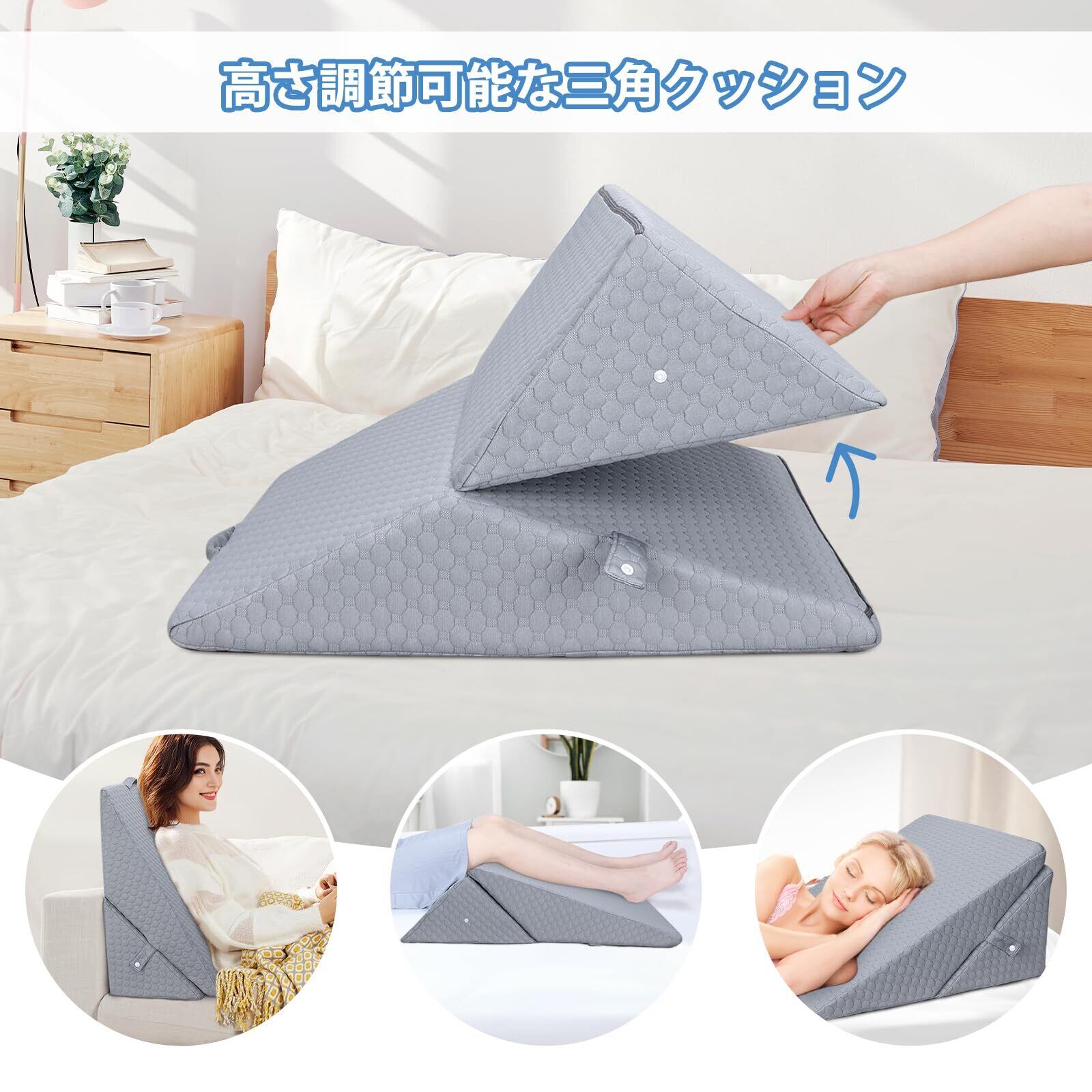 Azamia 三角クッション 三角枕 背もたれ クッション 傾斜枕 足まくら なだらか枕 横向き寝 折りたたみ式 腰枕 快眠サポート 大きい 高反発 ウェッジ枕 体位変換 介護 イビキ改善, グレー | BASE SHOP