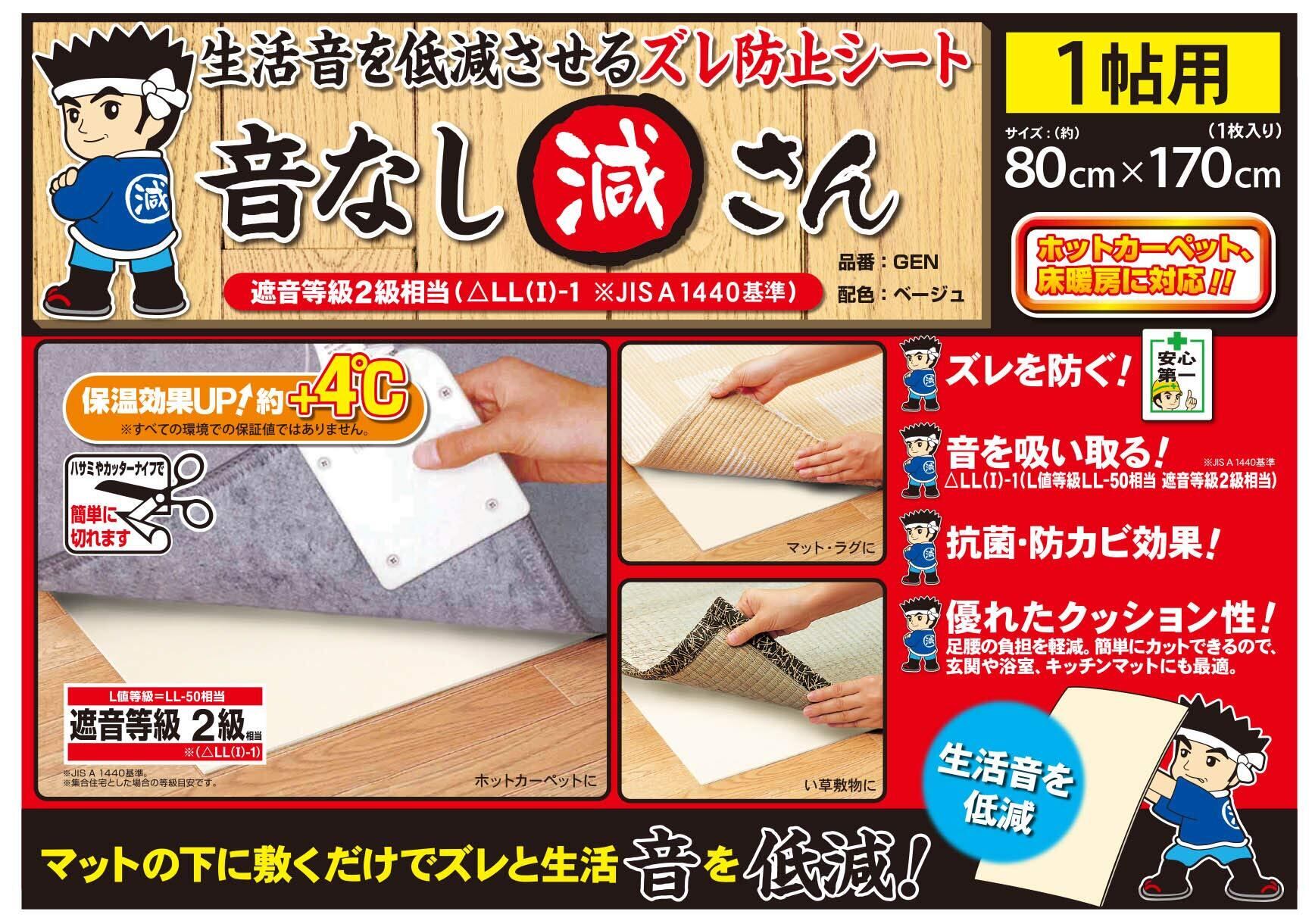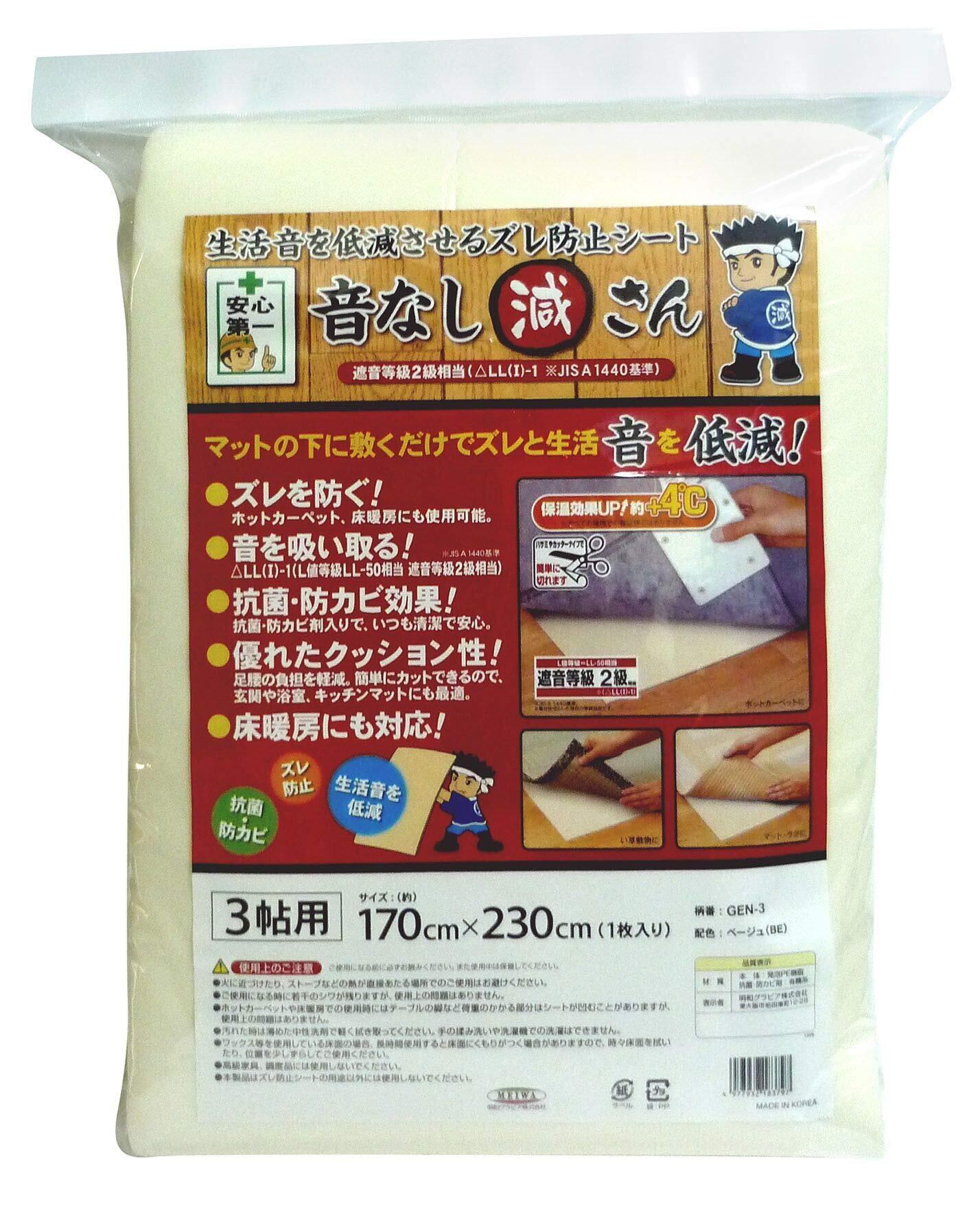 明和グラビア 防音ズレ防止 音なし減さん(2mm) GEN-3 ベージュ 170cm×230cm