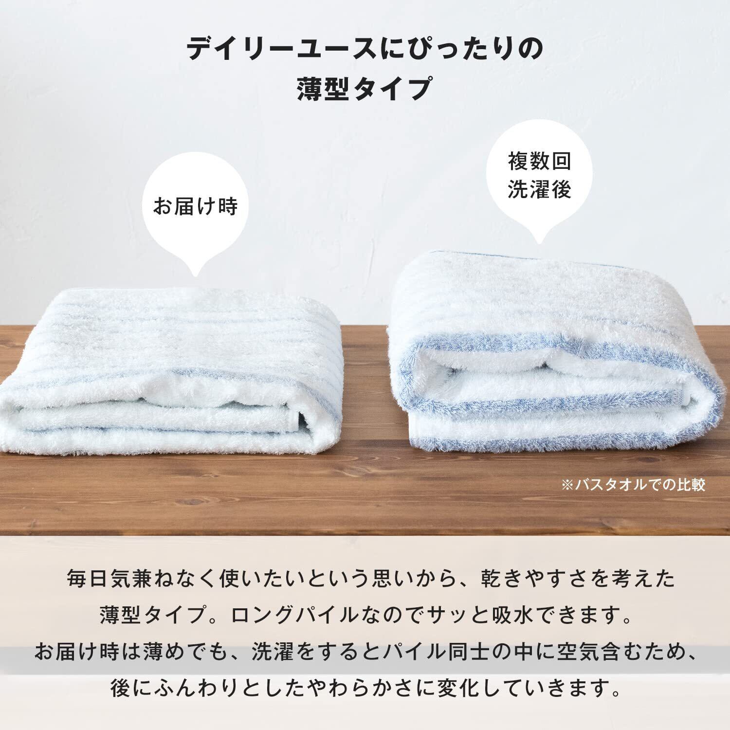 【40番手の糸をたっぷりと】極細綿糸を使用し、今治タオルブランドならではのパイル保持性もありますので、"柔らか"で"ふわふわ"としたタオルです。良質の細い糸を使用することで速乾性にも優れたタオルです。