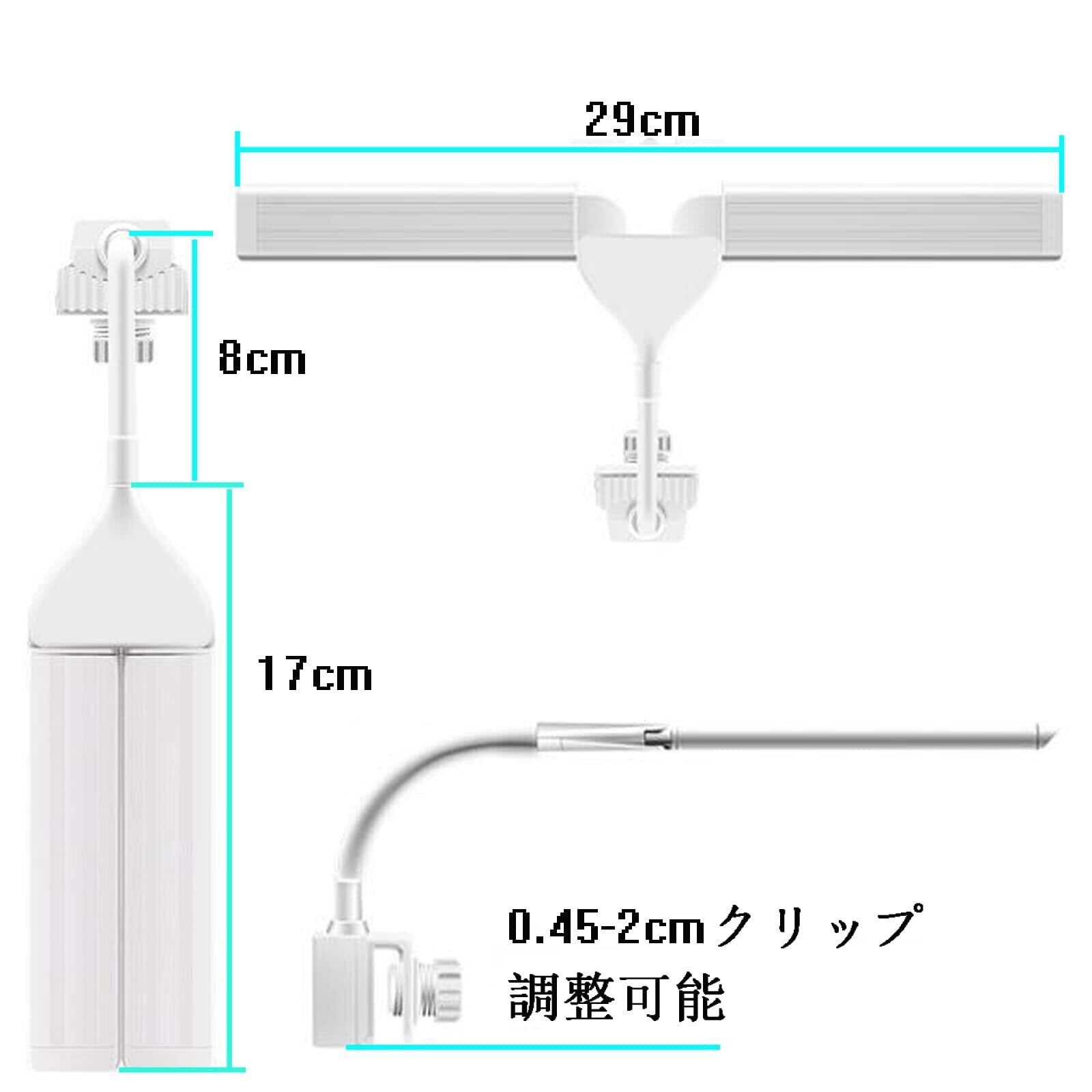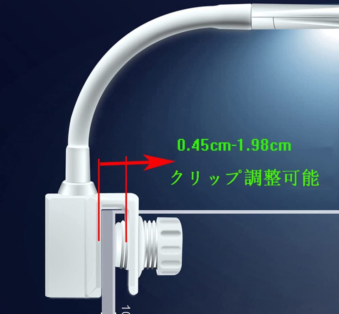 【製品の仕様とパラメータ】ライト長さ:17- 30cm(双葉は約30cm展開します),適用水槽:14-50cm,LED数量:16個のLEDランプビーズ,ランプの色:白/青/白青のライト、7500K色温度、5730高輝度LED製,定格電圧/周波数:110-240V AC、50/60 Hz,定格電力:4W ,電源コードの長さ:1.6M。