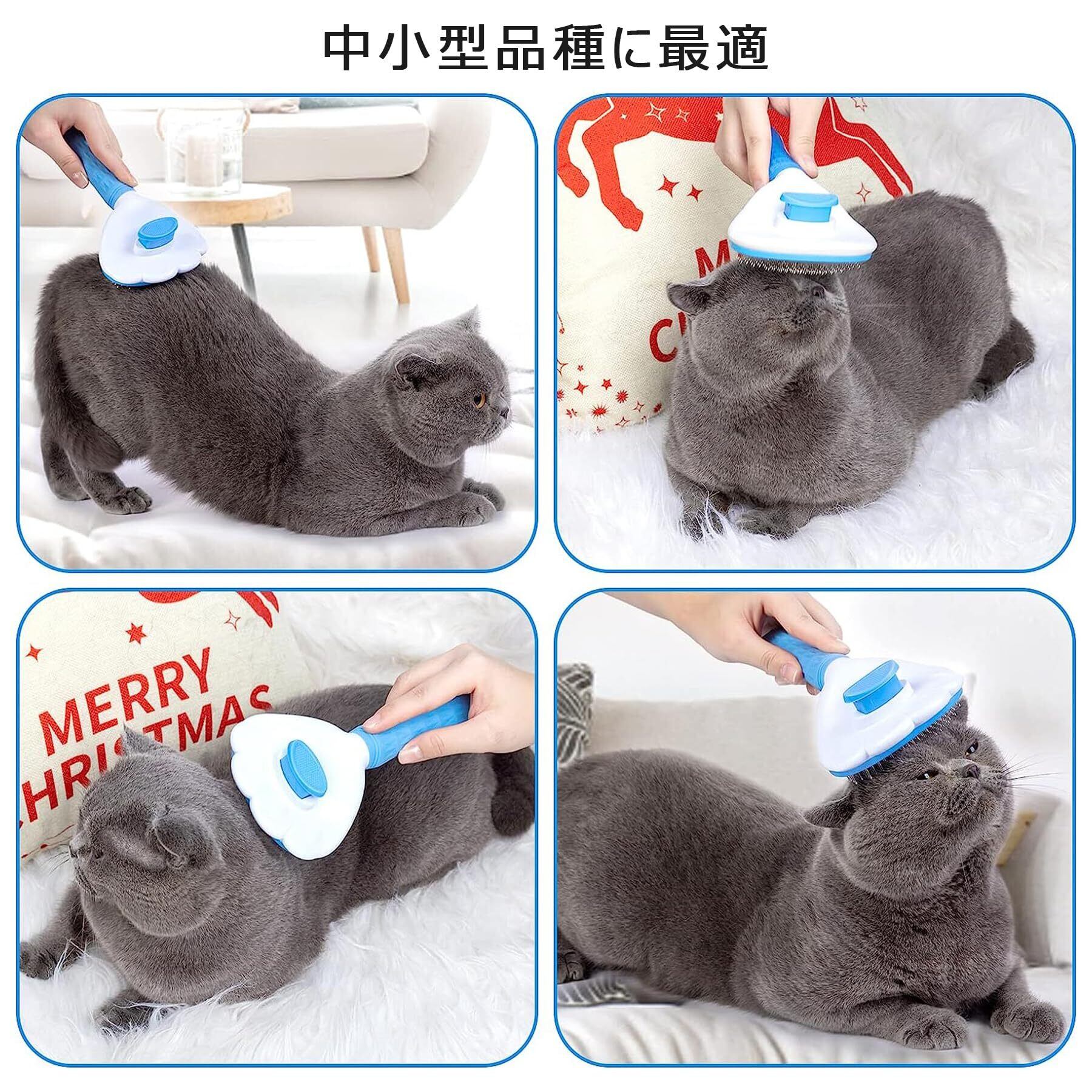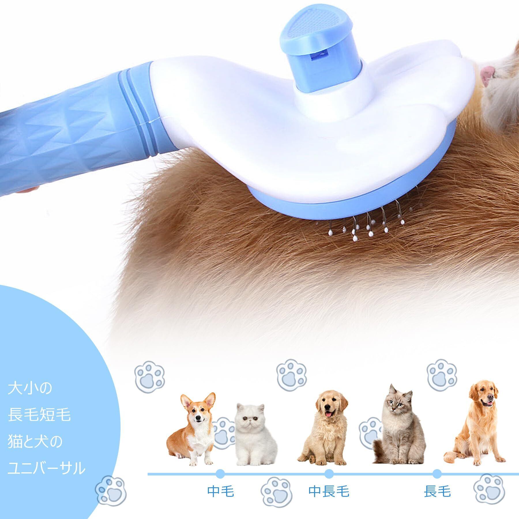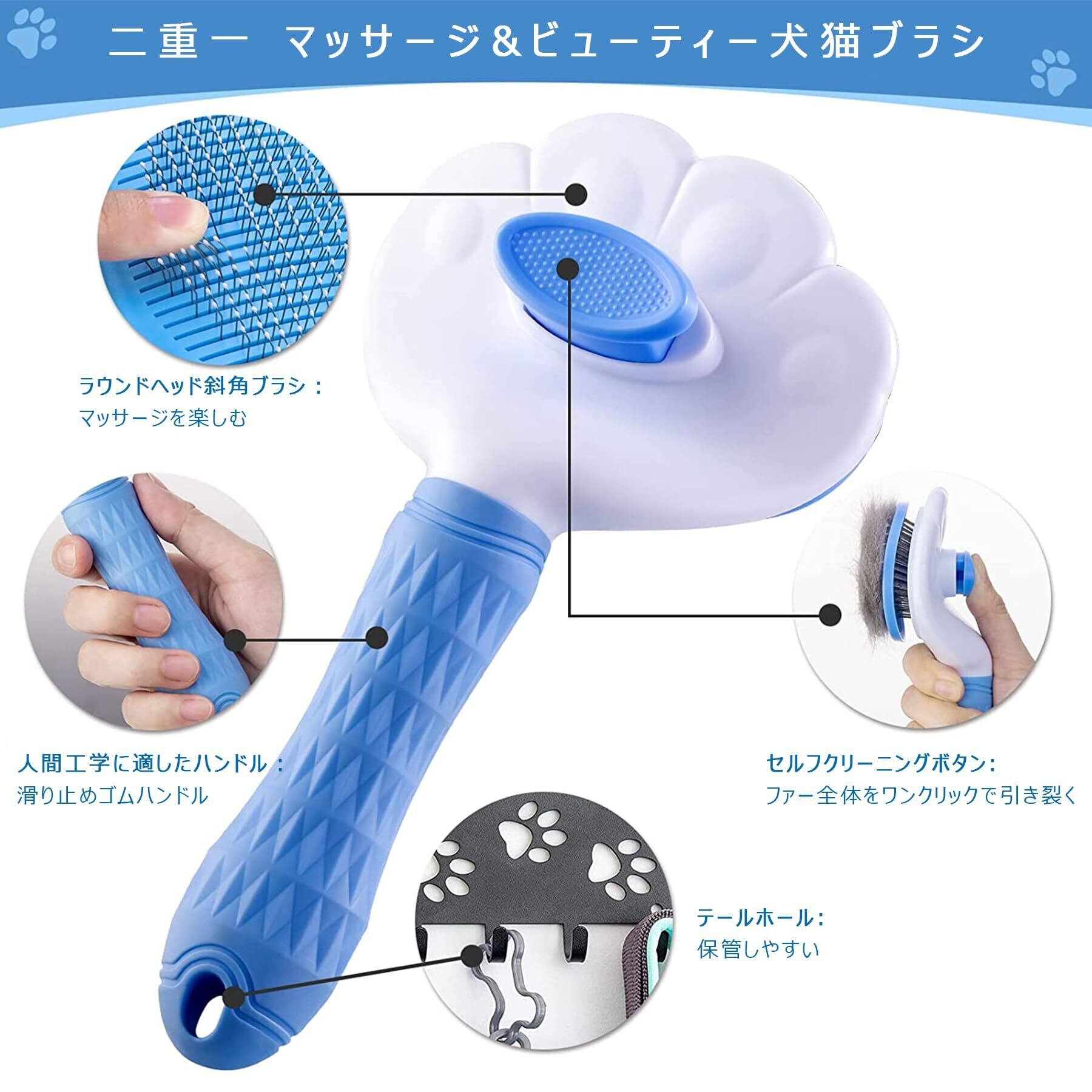【正規品】SanMori ペット用ブラシ痛くない ヒーリングブラシ スリッカーブラシ 犬 猫 長毛種・短毛種 くし ワンマッサージしながら抜け毛除去 ボタンを押して抜け毛が簡単に取れる グルーミングブラシ 猫・犬兼用(ブルー) | BASE SHOP