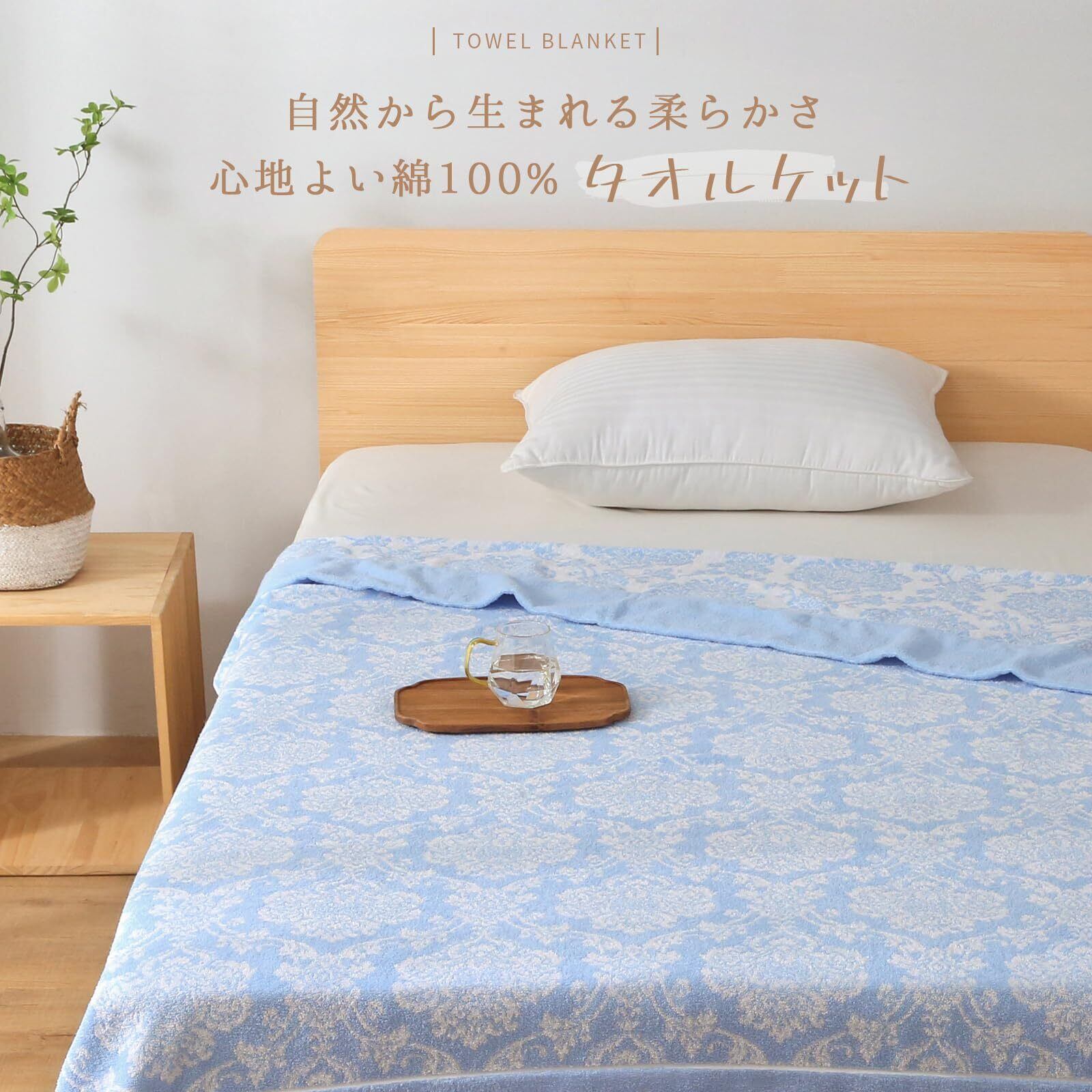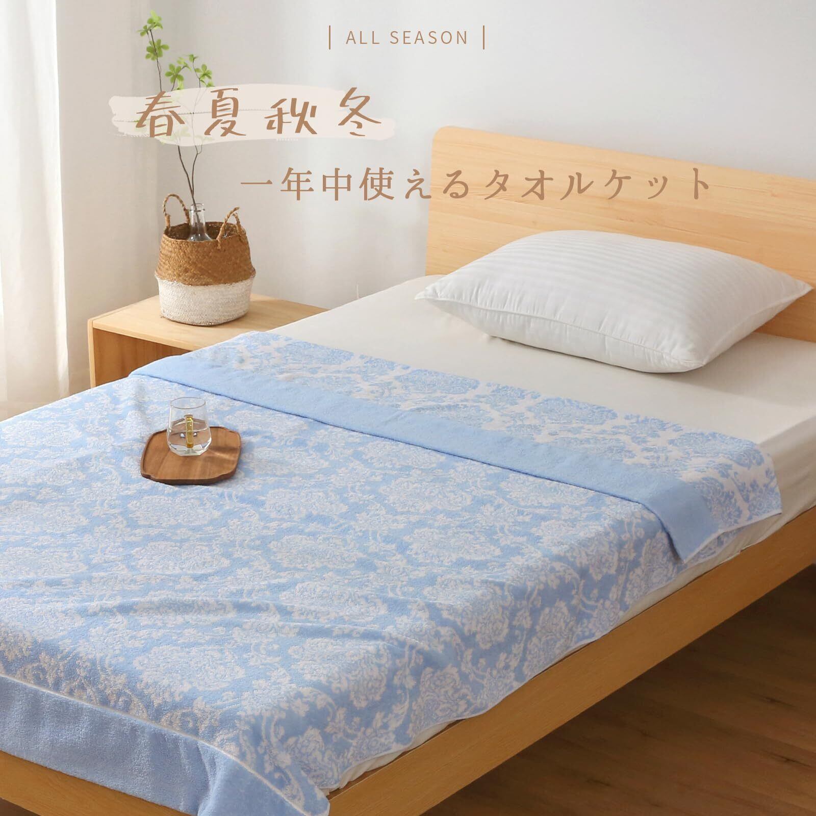 SE タオルケット シングル 夏用 ブランケット 綿100% おしゃれ 柔らかい ふんわり 吸湿速乾 抗菌防臭 洗える オールシーズン快適 140cmx200cm (からくさ·ブルー) 「SE Softexly」 | BASE SHOP