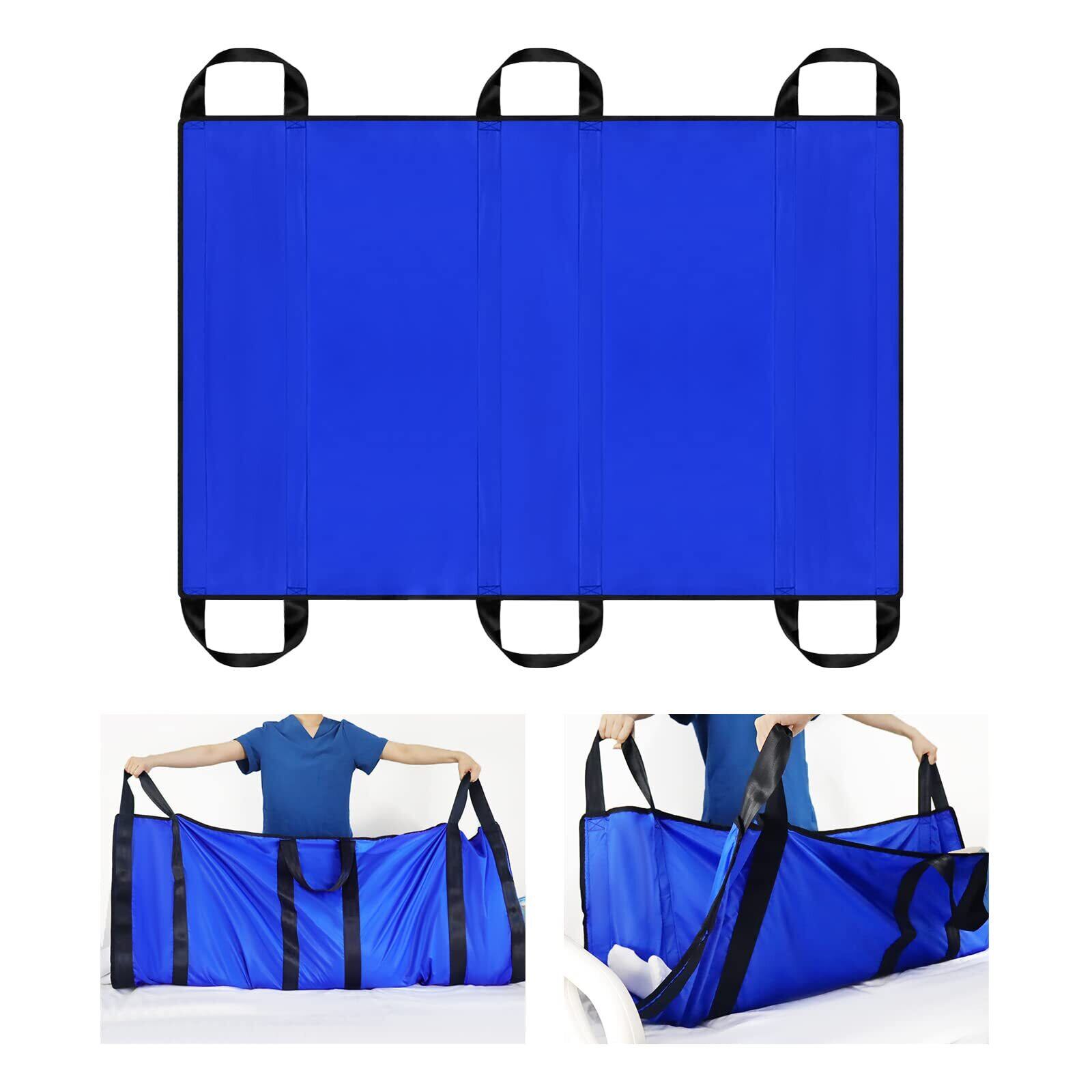 [LOSCHEN] 移乗シート 6ハンドル付き担架 一人用/二人用介護リフト 患者/高齢者移動サポート 負担減る 持ち運び可能介護シート (ブルー, 100*147cm)