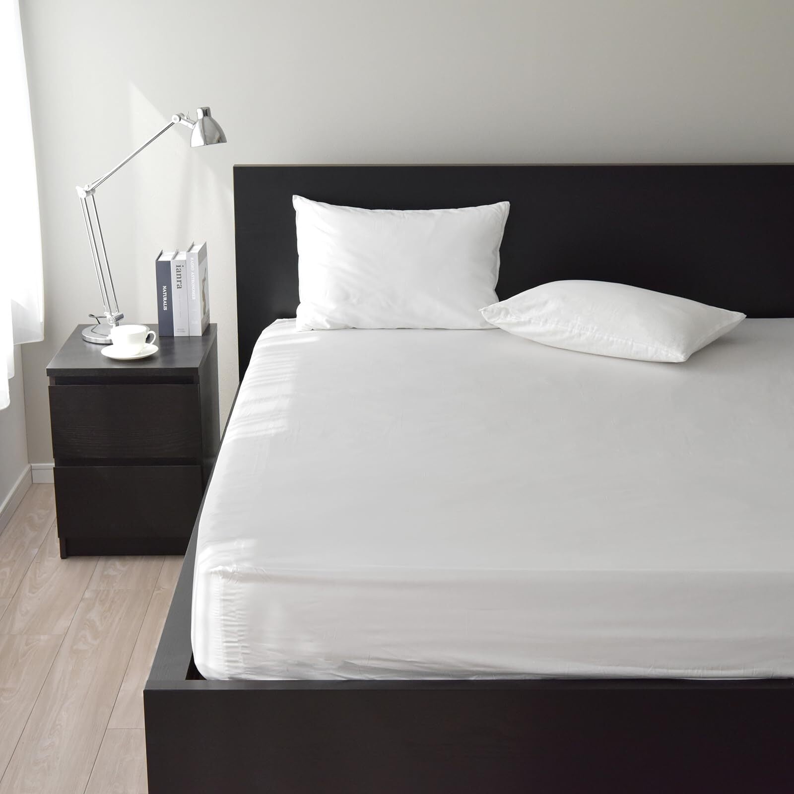 Sleep Tailor 日本製 ボックスシーツ キング 綿100% サテン350本高密度生地 防ダニ ベッドシーツ シルクのような肌触り 北欧 おしゃれ 超長綿 北欧 ホテル仕様 ノーブル (キング180×200×30cm, パールホワイト) | BASE SHOP