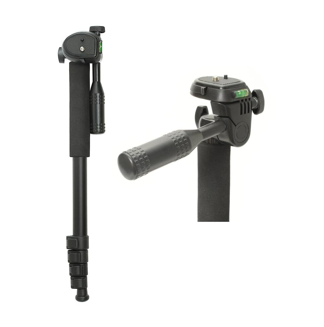 ビデオカメラの撮影に適した軽量一脚。クイックシュー付き雲台とパン棒で機動力がアップ。水準器も内臓。雲台のティルト機構を活かせば、カメラでの縦位置撮影も簡単です。