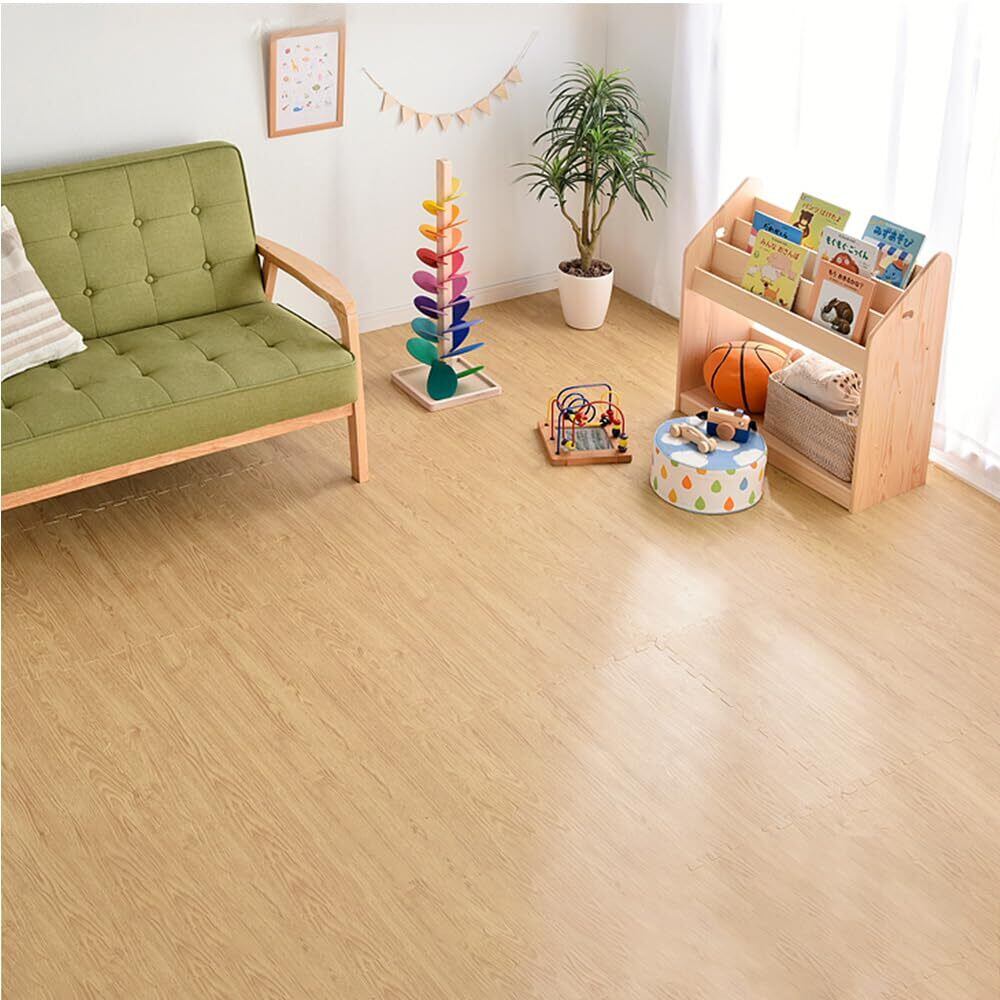 ・床材(塩化ビニル・フローリング等)によって、色移りや変色が起こる場合がございます。床とマットの間に敷物や防護シートを敷いていただくことを推奨しております。2019年1月10日に素材をEVAからPEに変更しました。 ※2022年12月1日にホワイトとライトグレーの販売を終了し、ライトオークとオフホワイトの販売を開始しました。