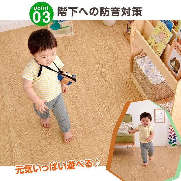 【備考】・ロットによって色味が異なる場合がございます ・こちらの商品は2017年9月と2019年3月にナチュラルの色味を変更しました。またジョイント部分の形状を変更、カラーバリエーションを一新しました。 ・マット毎に若干の色の違い、見る角度による色の違い等がありますが、これはPEマットの加工特性であり、使用上の品質には問題ございません。 ・床暖房の種類等によって、商品に多少の反りが生じる場合がございます。 ・商品の仕様上、ジョイント部分(サイドパーツ含む)の木目の柄は合わない場合がございます。 ・重量物を載せますと、マットが凹み変形する恐れがあります。