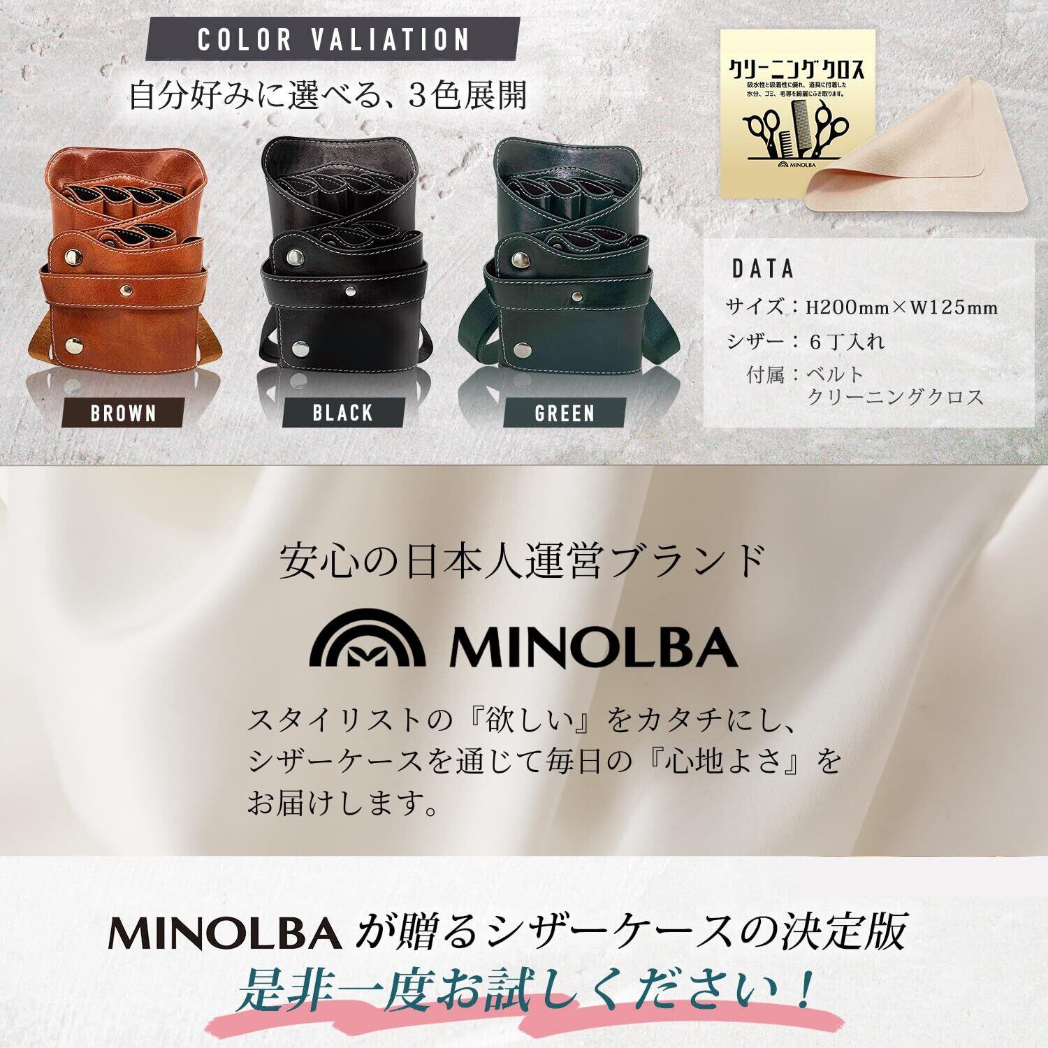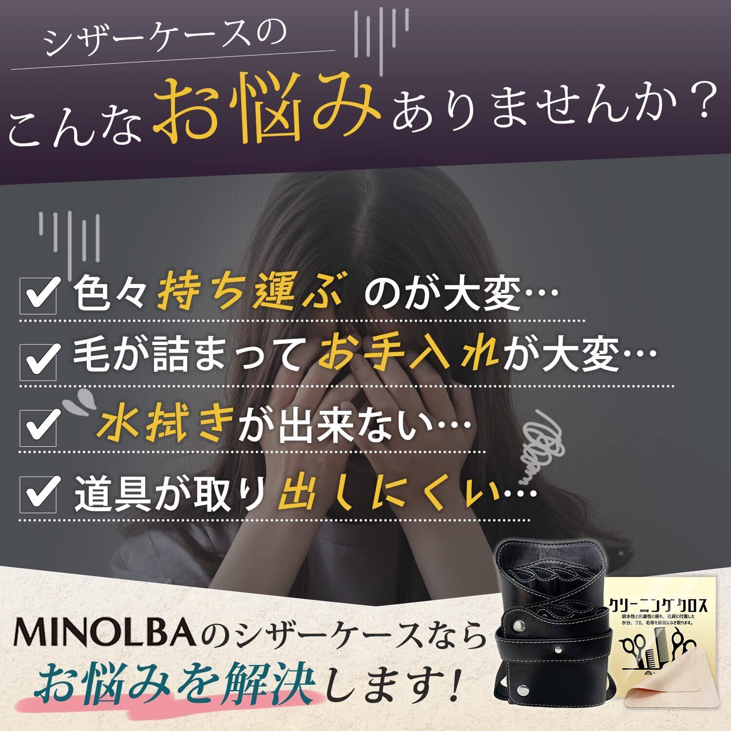 シザーケース 美容師 6丁収納 腰掛け 肩掛け 軽量 お手入れ簡単 クロス付き シザーバッグ 理容師 トリマー スタイリスト プロ仕様 MINOLBA (Brown)